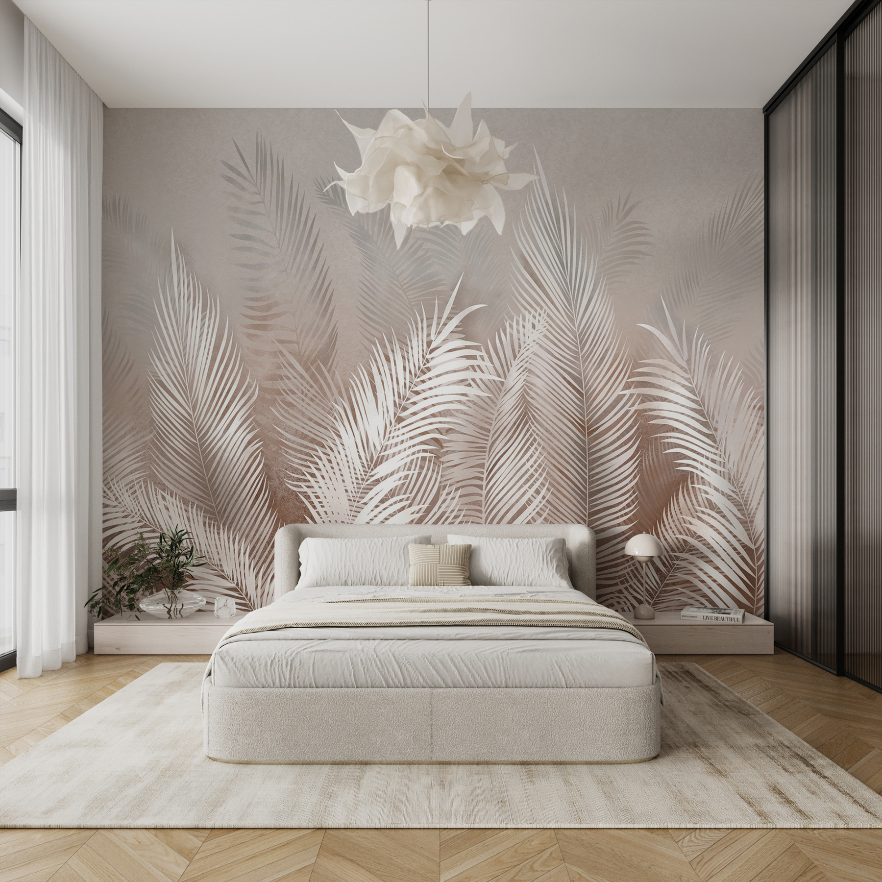 Proměňte svůj prostor v oázu klidu díky této úchvatné fototapetě s elegantními palmovými listy na jemném, zasněném pozadí. Představte si, že vejdete do místnosti a ucítíte jemný vánek – dobře, možná ne doslova, ale ta atmosféra tam rozhodně je. Tlumené barvy se bez námahy kombinují s jakýmkoli stylem výzdoby, takže je ideální pro uklidňující útočiště v ložnici nebo elegantní dotek v obývacím prostoru. Přátelé si budou myslet, že máte talent na design, nebo možná dokonce tajného přítele designéra. A kdo by nechtěl mít v interiéru tropickou atmosféru? Zdá se, že listy se jemně pohupují a vybízejí k pocitu klidu. Ať už popíjíte ranní kávu, nebo odpočíváte po dlouhém dni, tato nástěnná malba tiše našeptává: “Odpočívejte, jste v ráji.” Ať už se vám to líbí, nebo ne, tato nástěnná malba je jako z pohádky. Je to jako mít kousek přírody přímo na zdi.