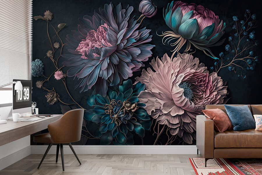 Proměňte jakýkoli prostor pomocí této úžasné nástěnné malby s živými květinami v kouzelném uspořádání. Je to jako přenést zahradu do interiéru bez nepořádné půdy a otravného hmyzu. Představte si, že se každý den probouzíte s těmito nádhernými květy! Syté barvy vytvářejí útulnou a příjemnou atmosféru, která je ideální pro obývací pokoje nebo útulná zákoutí. Představte si, že hostíte přátele – všichni budou přitahováni k této stěně a obdivovat ty složité okvětní lístky. Je to okamžitý začátek konverzace, věřte mi. Nepotřebujete k tomu žádný zelený palec, stačí láska ke kráse a špetka kreativity. Umění na zdi ještě nikdy nebylo tak živé!