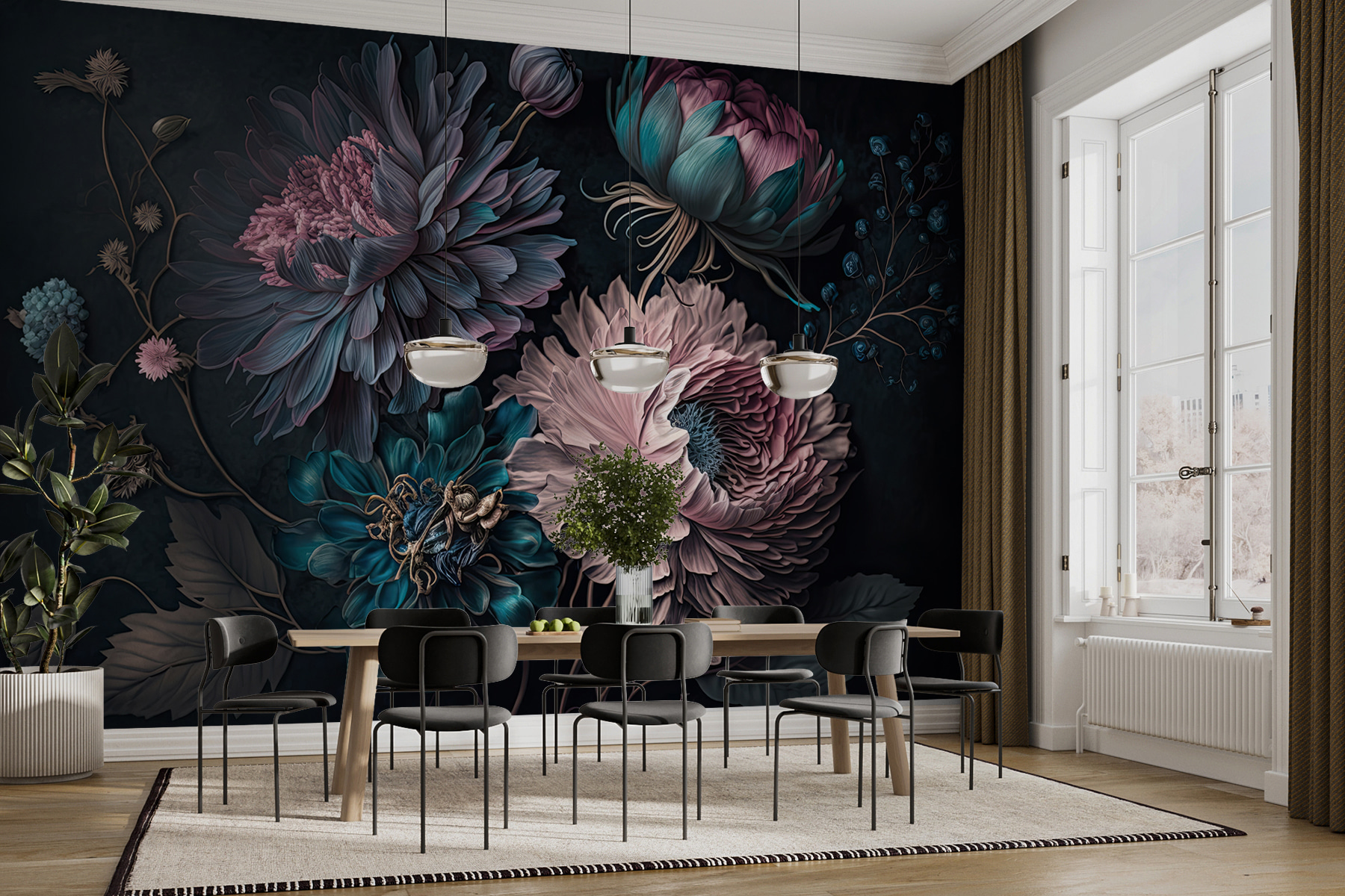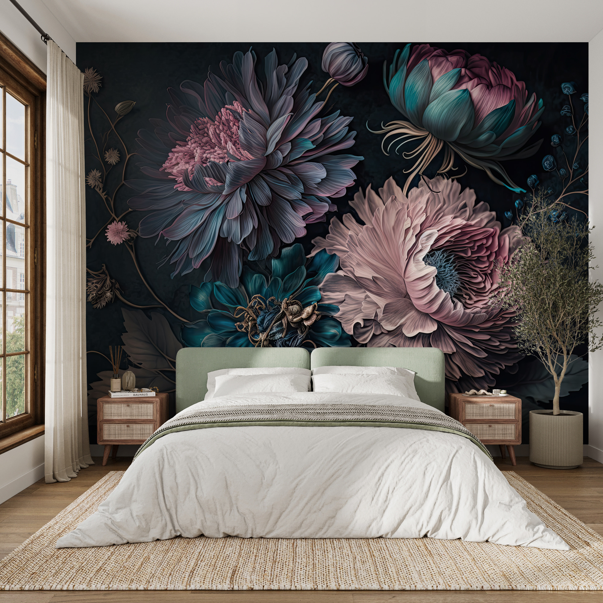 Proměňte jakýkoli prostor pomocí této úžasné nástěnné malby s živými květinami v kouzelném uspořádání. Je to jako přenést zahradu do interiéru bez nepořádné půdy a otravného hmyzu. Představte si, že se každý den probouzíte s těmito nádhernými květy! Syté barvy vytvářejí útulnou a příjemnou atmosféru, která je ideální pro obývací pokoje nebo útulná zákoutí. Představte si, že hostíte přátele – všichni budou přitahováni k této stěně a obdivovat ty složité okvětní lístky. Je to okamžitý začátek konverzace, věřte mi. Nepotřebujete k tomu žádný zelený palec, stačí láska ke kráse a špetka kreativity. Umění na zdi ještě nikdy nebylo tak živé!