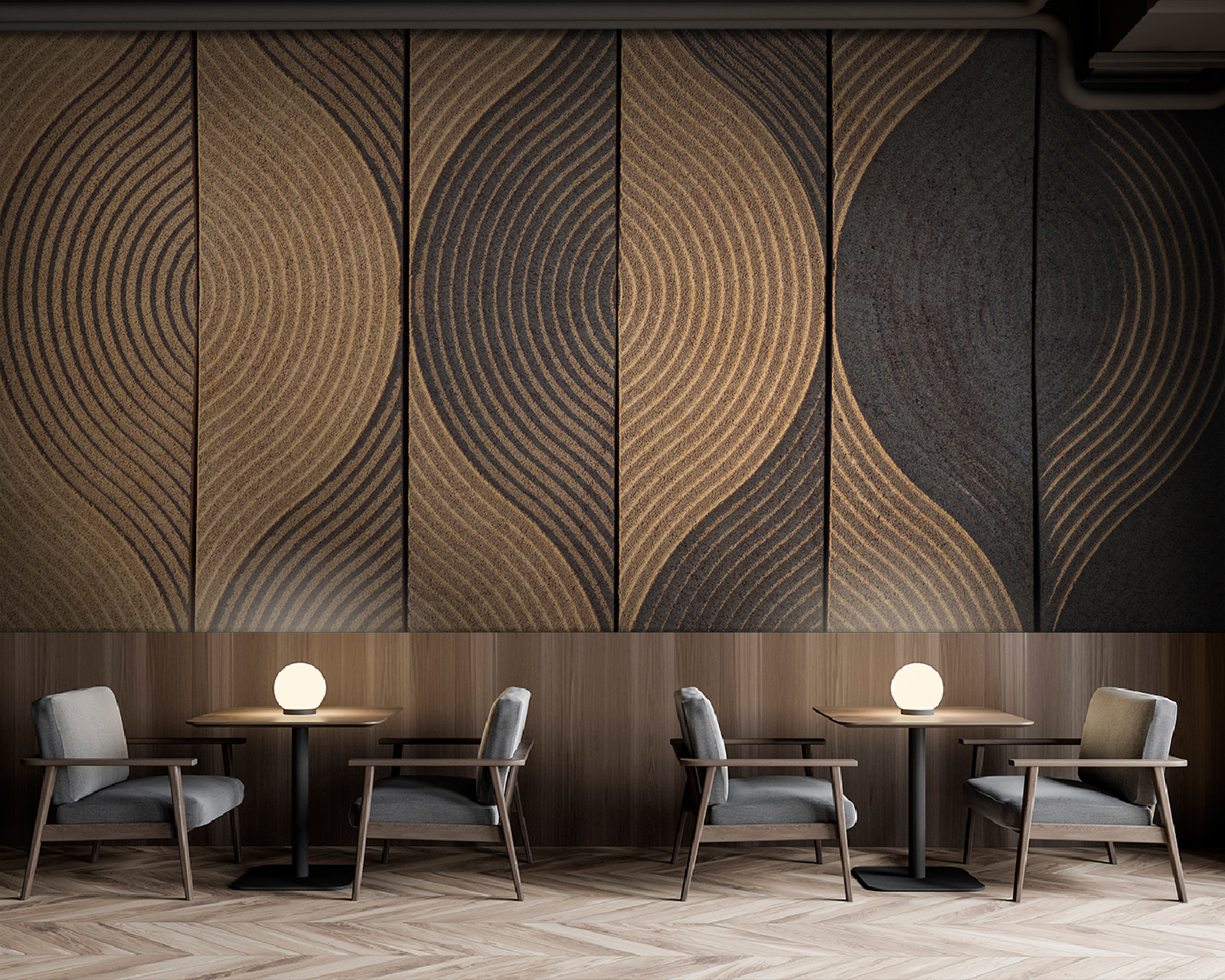 Představte si, že si odpočinete v místnosti se stěnami, které na vás okamžitě dýchnou klidnou a zemitou atmosférou – přesně to dělá tato nástěnná malba. Je to doslova jako mít na zdi zenovou zahradu. Tyto vlnové vzory na dřevěných panelech vytvářejí nádherný, přirozený rytmus, který vás prostě vtáhne dovnitř. Je to tak trochu hypnotické, že?
