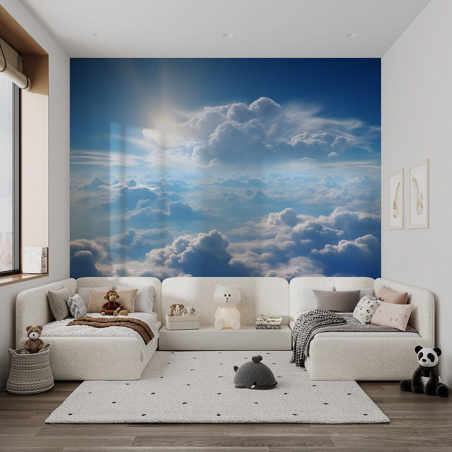 Proměňte jakýkoli prostor v zasněný únik s touto úžasnou nástěnnou malbou s nadýchanými mraky na jasně modré obloze. Představte si, jak skrz ně vykukuje slunce a vrhá jemnou záři, která okamžitě zvedne náladu. Je to jako mít kousek toho dokonalého dne přímo na zdi. Ideální do obývacího pokoje, ložnice nebo třeba do útulného čtecího koutku, vybízí ke snění a relaxaci. Jen si představte, jak se s teplým nápojem v ruce uvelebujete v pohodlném křesle, zatímco svět venku mizí. Tato nástěnná malba je závanem čerstvého vzduchu, který přináší klid, aniž byste potřebovali letenku. Kdo by se nechtěl cítit, jako by se vznášel v oblacích?