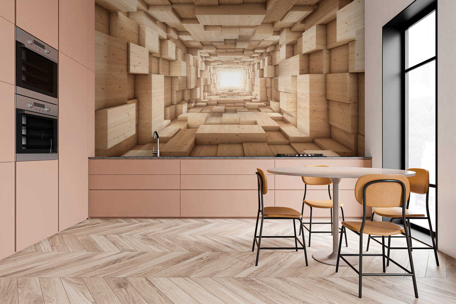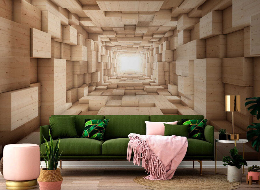Hej, podívejte se na tohle! Tahle nástěnná malba “Dřevěná krabice na zdi” je vážně skvělá. Představte si, že vstoupíte do místnosti, která vypadá jako dřevěný labyrint z 3D bloků – je to jako z nějaké dobrodružné hry. Ideální pro každého, kdo má rád moderní abstraktní vzory. Vytváří pocit hloubky a pohybu, téměř jako by stěna ožívala. Přírodní dřevěné tóny navíc dodávají hřejivý, útulný pocit. Ideální pro proměnu obývacího pokoje, kanceláře nebo jakéhokoli prostoru, který by potřeboval trochu kouzla. Vážně se v něm ztratíte, a to tím nejlepším možným způsobem.