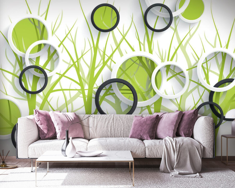 Proměnit pokoj v útulné útočiště může být jen otázkou odlepení a nalepení této „tapety s kruhy a stromy“. Představte si, že vstupujete do světa, kde se geometrické tvary setkávají s kouzlem přírody. Tyto zářivé zelené barvy v kombinaci s čistými liniemi kruhů vytvářejí vzdušnou atmosféru, která působí svěže – jako když otevřete okno v jarní den! Není potřeba žádné kladivo ani hřebíky; tato tapeta se odlepuje a lepí jako sen. Je ideální pro hravé dětské pokoje, stylové obývací pokoje nebo jakýkoli prostor, který potřebuje rychle oživit. Představte si, jak popíjíte ranní kávu a ztrácíte se v těch vířících vzorech, nebo jak hostíte přátele, kteří nemohou přestat obdivovat vaše nástěnné umění. Vyvolá to konverzaci a možná i trochu závisti – jen trošku. Připravte se tedy na tento svérázný, ale klidný dekor, který bez zbytečného rozruchu vnáší do interiéru nádech přírody.