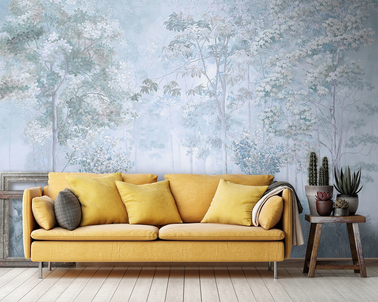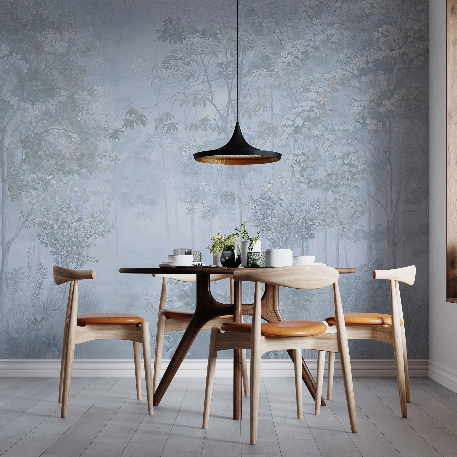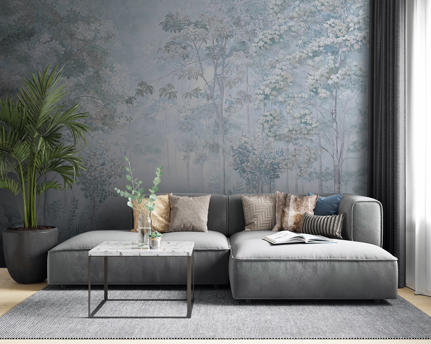 S touto okouzlující nástěnnou malbou se stromy a rostlinami se dostanete do zasněného úniku. Představte si jemné šumění listí a tichý šepot mlžného lesa přímo ve svém obývacím pokoji. Je to jako přenést si kousek přírody do interiéru, bez brouků a promočených bot. Tlumené barvy vytvářejí uklidňující atmosféru, ideální pro útulné večery nebo relaxační rána s kávou. Je to tichá připomínka zpomalení a dýchání, díky níž se každý prostor cítí klidnější. Proměňte své stěny tímto klidným nádechem a nechte se každý den omývat kouzlem přírody.