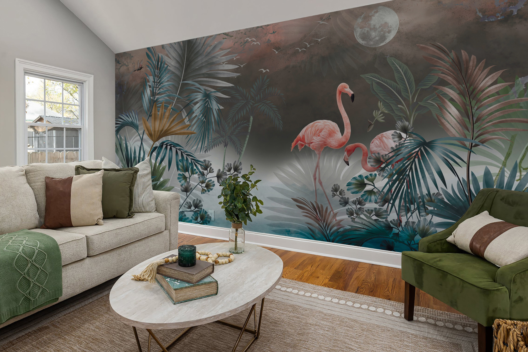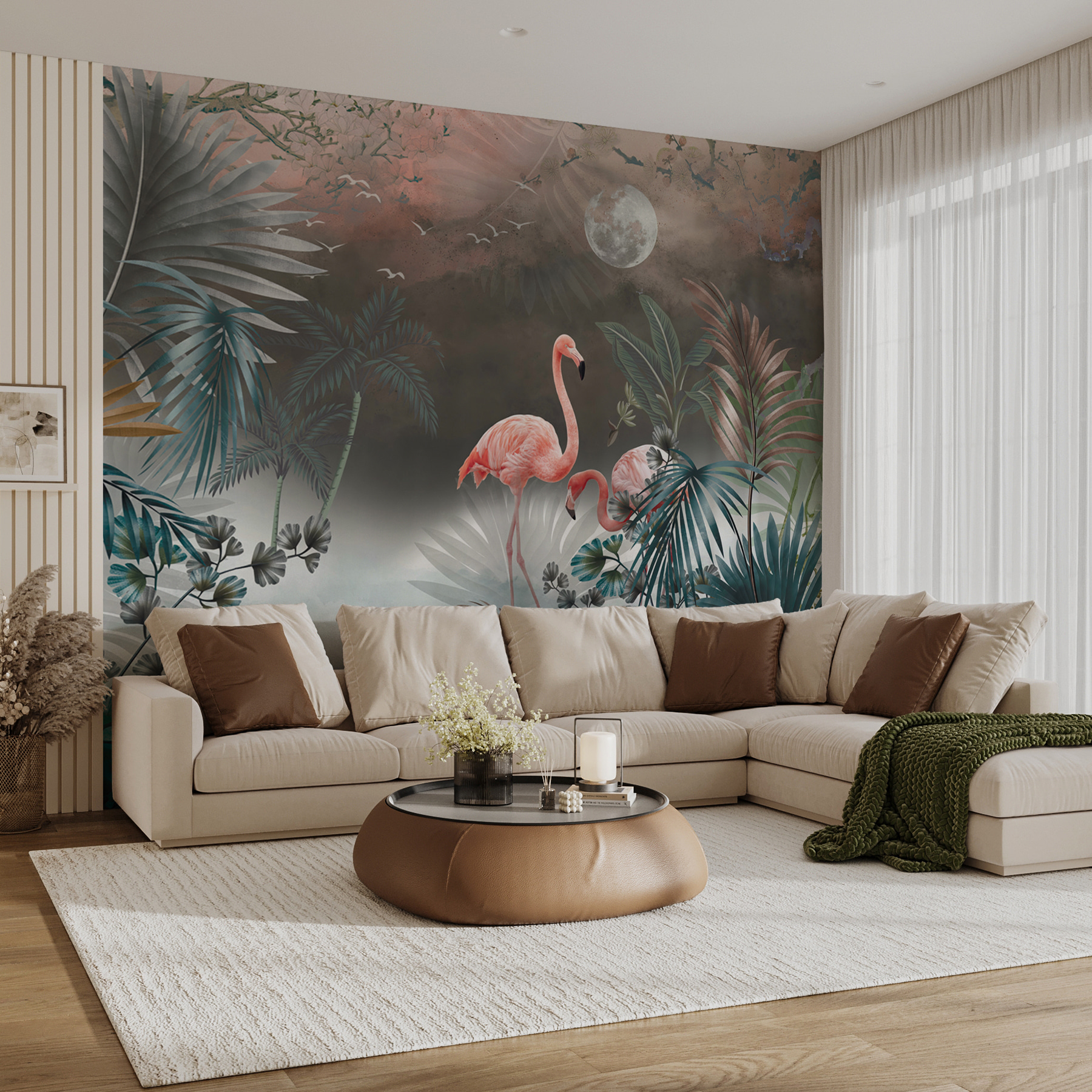 Proměňte jakýkoli prostor v tropické útočiště díky úžasné nástěnné malbě s plameňáky uprostřed klidného ráje. Představte si, že přímo z obývacího pokoje nebo pracovního místa vstoupíte do snového úkrytu. Jemné odstíny a svěží zeleň vytvářejí pocit, jako by jimi proplouval jemný vánek, zatímco veselí plameňáci skotačí a dodávají radost. Tato fototapeta není jen tapetou, je to podnět ke konverzaci, malý kousek přírody, který vám možná připomene nezapomenutelnou dovolenou na pláži. Perfektně se hodí k vytvoření uklidňující atmosféry, ať už jde o útulný koutek nebo živou jídelnu. Tak směle do toho – nechte tropy přijít k vám!