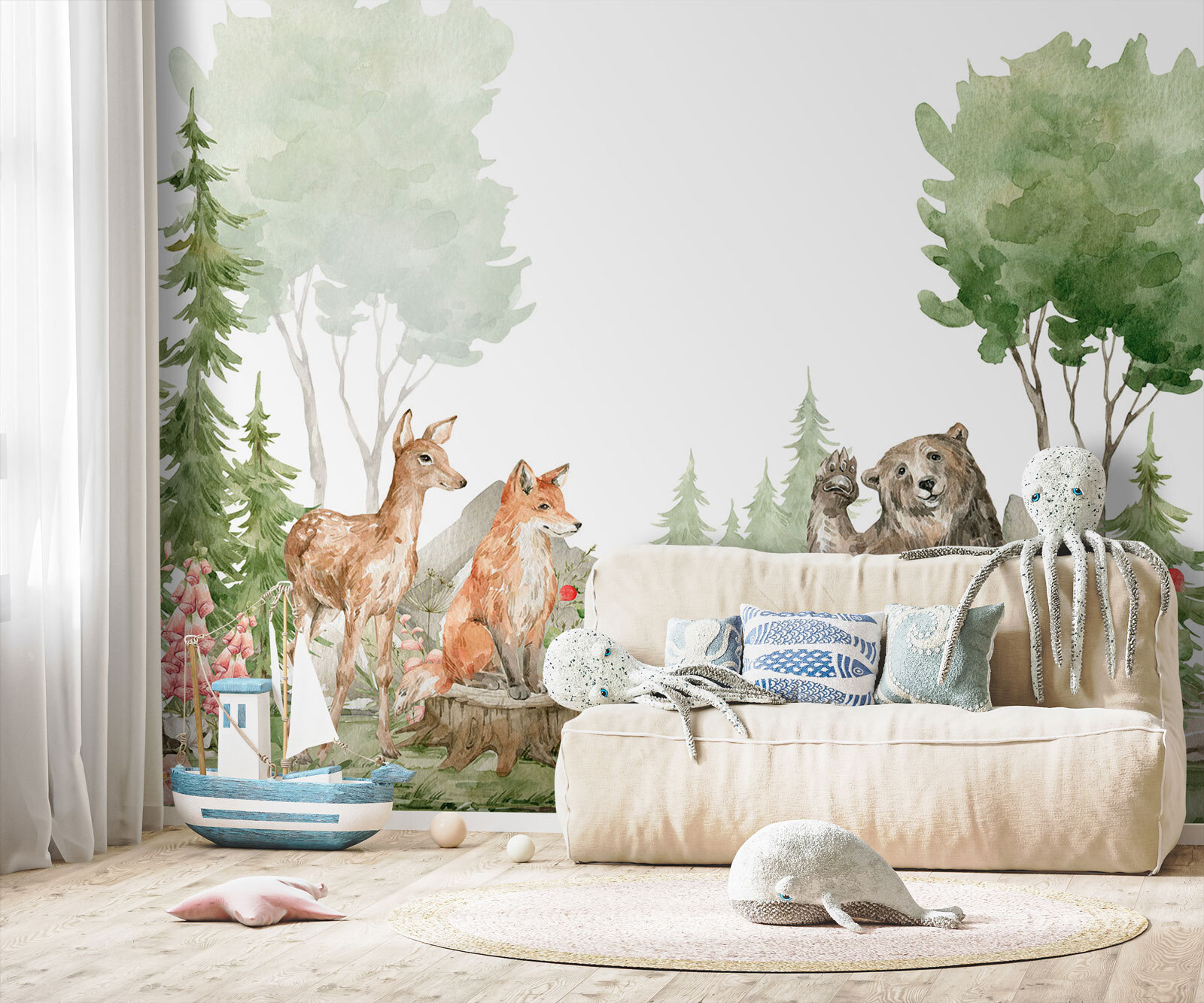 Jen se podívejte na tu okouzlující lesní scénu! Tato fototapeta “Nástěnná fototapeta Lesní zvířata se srdečně zdraví” je ideální do každého dětského pokoje, jako byste si domů přinesli pohádku. Představte si, že se vaše děťátko probudí a uvidí medvěda, který mu mává na pozdrav, jeleny a lišky, jak si ráno povídají, a roztomilého ježka, který si jen tak lebedí. Je to jako lesní přehlídka přímo na vašich zdech! Jemná akvarelová atmosféra dodává nádech rozmarnosti a tepla, který je ideální pro vytvoření útulné a kouzelné atmosféry. Vaše děti ji budou zbožňovat – a upřímně řečeno, pravděpodobně se přistihnete, že se usmíváte pokaždé, když jdete kolem!