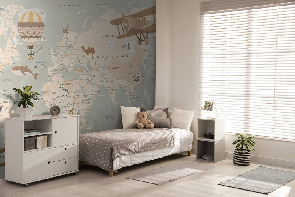 Proměňte svůj prostor v pohádkové dobrodružství s touto nádhernou tapetou s mapou světa. Představte si to: barevné horkovzdušné balóny a okouzlující letadla plující po vašich stěnách a vyvolávající touhu po cestování. Je to, jako byste měli kousek světa přímo ve svém obývacím pokoji. Jemné, tlumené barvy vytvářejí uklidňující atmosféru – ideální pro snění nebo plánování další dovolené. Představte si, jak sedíte s oblíbeným nápojem, díváte se na tuto tapetu a necháváte svou fantazii létat jako ty krásné balóny. Každý pohled vyvolává radost a zvědavost ohledně vzdálených míst, která čekají na prozkoumání. Není to jen dekorace, je to inspirace.