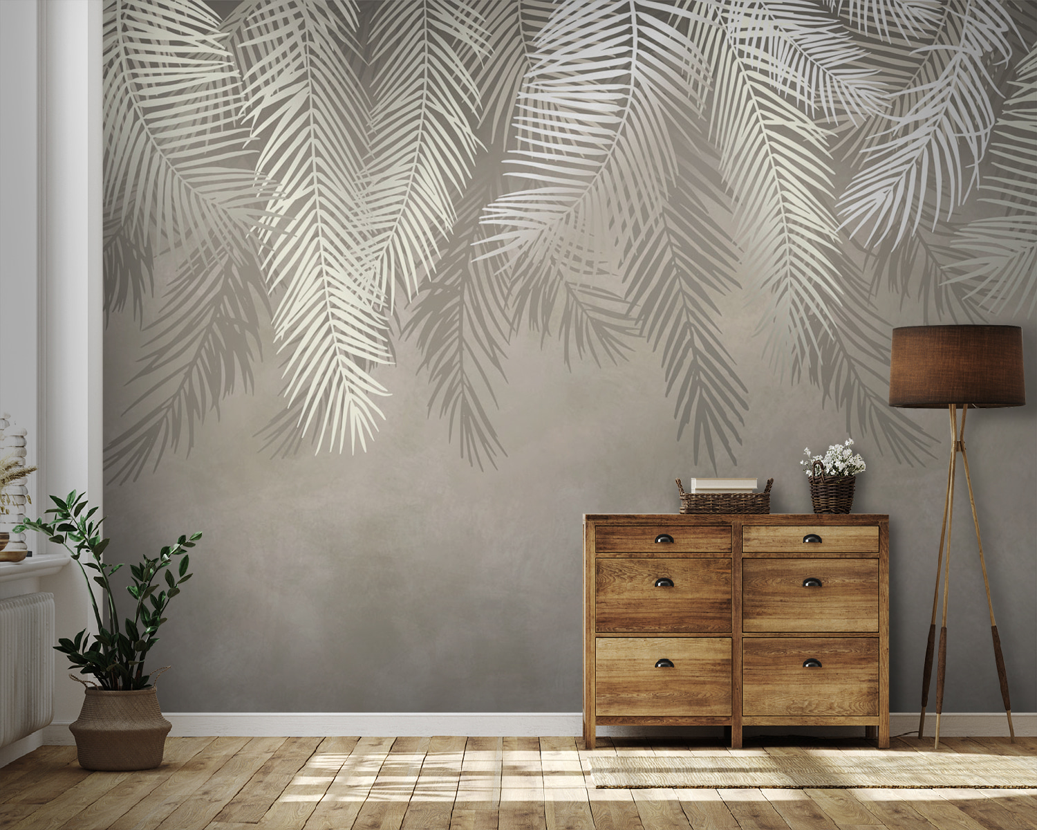 Proměňte svůj prostor s jemnou elegancí naší nástěnné malby Tropical Leaves. Je to jako přenést kousek ráje do interiéru, ale bez vlhkosti. Jemné odstíny a křehké palmové listy dodávají nádech klidu, který vám v mžiku přinese pocit uvolnění. Představte si, že každý den začíná uklidňujícími vibracemi tropické dovolené přímo ve vašem obývacím pokoji. Tato nástěnná malba je ideální pro vytvoření uvolněné, stylové atmosféry – ať už popíjíte kávu, nebo se bavíte s přáteli. Je to kulisa, která vybízí ke komplimentům a díky níž se budete doma cítit jako v blaženém útočišti. Připravte se na pořádnou listovou terapii!