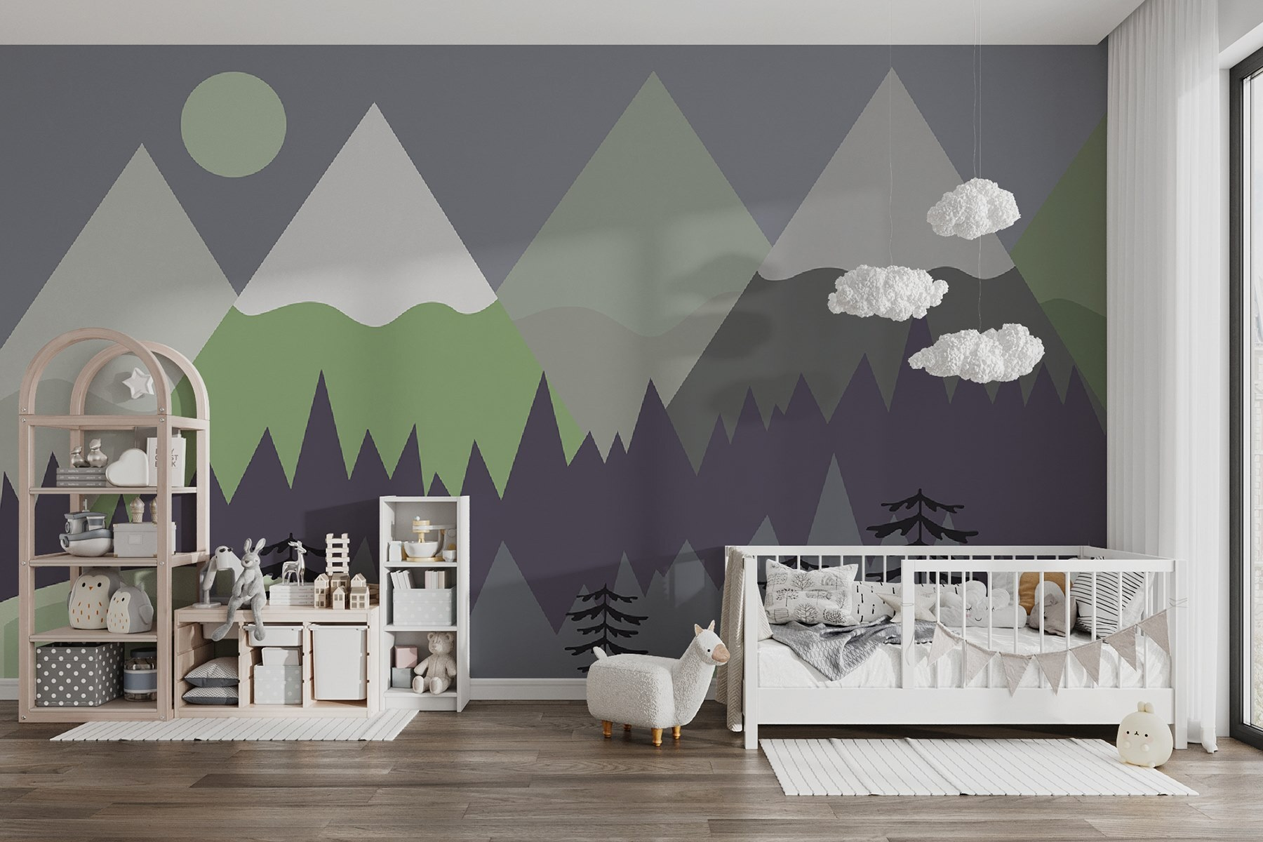 Ideální pro dětský pokoj, vzbuzuje všechny druhy dobrodružných pocitů. Malí průzkumníci si mohou představovat táborové ohně a lesní stezky. A upřímně, je skvělá, i když jste v srdci jen dítě! Tato nástěnná malba je nejoblíbenější (věřte mi, má to svůj důvod). Vsadím se, že na ni nepřestanete zírat. Snové, že?
