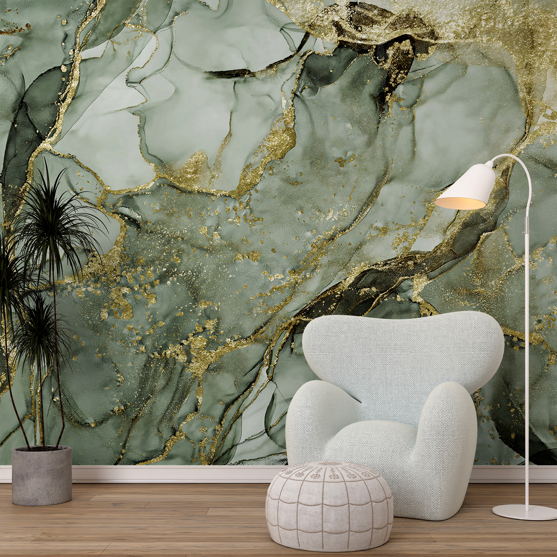 Proměňte jakýkoli prostor v klidné útočiště pomocí této abstraktní nástěnné malby ze zeleného mramoru. Je to jako přenést kousek přírody do interiéru – jen bez bláta a brouků. Jemná zeleň víří a tančí a vybízí k odpočinku po dlouhém dni. Představte si ji v útulném čtecím koutku nebo třeba jako výrazné pozadí v jídelně. Přátelé se budou zastavovat a obdivovat a divit se, jak jste získali tak elegantní atmosféru. Navíc se v něm dokonale snoubí elegance a zemitost, takže v každé místnosti bude působit svěže a příjemně. Kdo by řekl, že se v umění můžete cítit tak dobře?