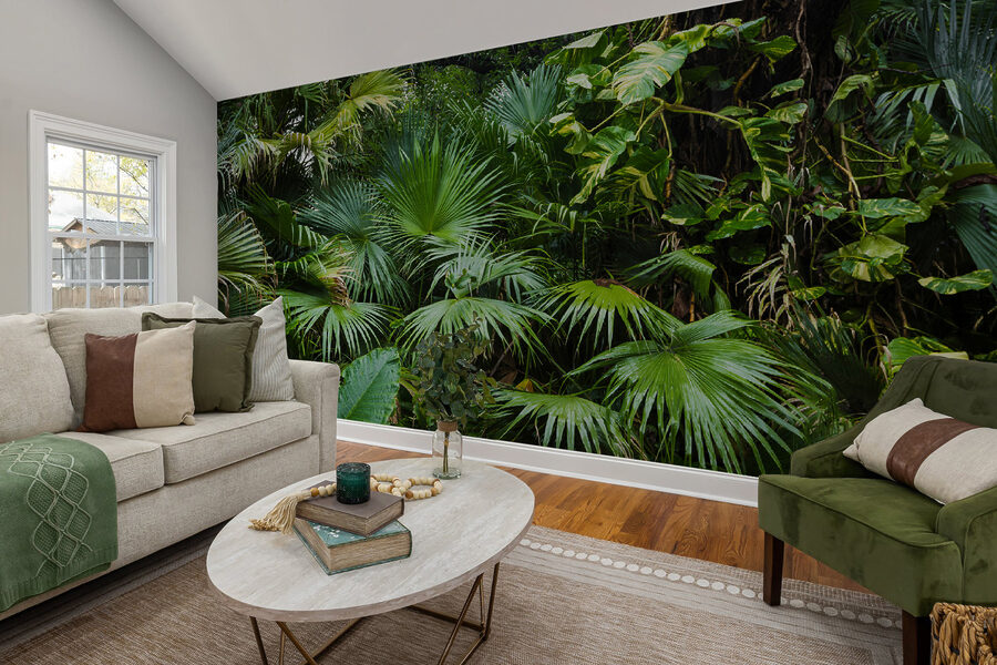 Proměňte svůj prostor v klidné útočiště s nástěnnou malbou “Svěží scéna tropického lesa se zelení”. Tato fototapeta vnese živé stromy džungle, svěží zeleň a příval zeleně přímo do vašeho obývacího pokoje. Představte si, že se každé ráno probouzíte s pohledem na husté tropické listí – je to jako mini dovolená, aniž byste museli opustit svůj domov. Ideální pro ty, kteří touží po doteku přírody nebo se jen chtějí ztratit v zeleni. Obraz je ideální do každé místnosti, která hledá kousek divočiny, a je součástí nástěnných maleb Jungle Tree, ale je tak univerzální, že ho možná najdete i v kategoriích Oblíbené nástěnné malby a Dřevěné nástěnné malby. Ať už si chcete odpočinout, nebo jen milujete jedinečné dekorace, díky této fototapetě se vaše stěny budou cítit jako živé – téměř jako byste vstoupili do vlastního soukromého lesa. Představte si ji jako své každodenní útočiště, ke kterému nepotřebujete žádný kufr!