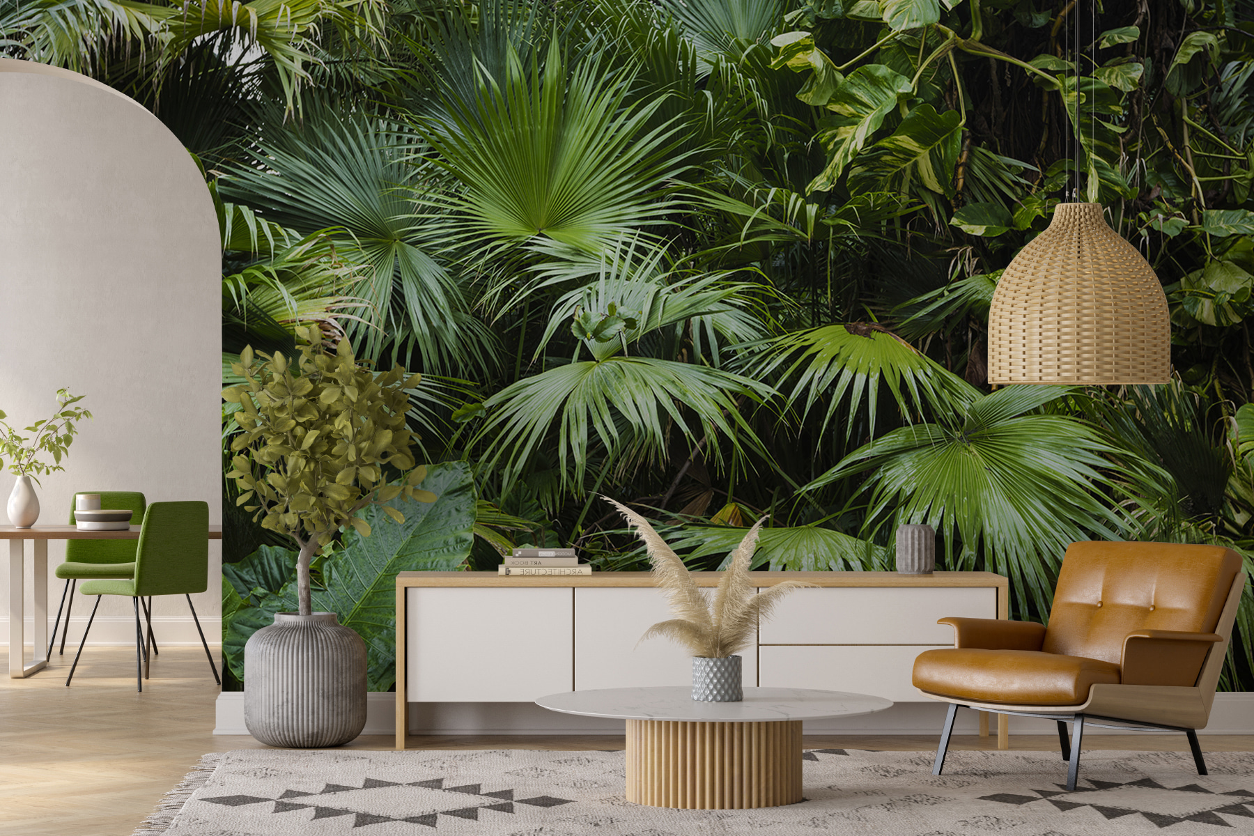 Proměňte svůj prostor v klidné útočiště s nástěnnou malbou “Svěží scéna tropického lesa se zelení”. Tato fototapeta vnese živé stromy džungle, svěží zeleň a příval zeleně přímo do vašeho obývacího pokoje. Představte si, že se každé ráno probouzíte s pohledem na husté tropické listí – je to jako mini dovolená, aniž byste museli opustit svůj domov. Ideální pro ty, kteří touží po doteku přírody nebo se jen chtějí ztratit v zeleni. Obraz je ideální do každé místnosti, která hledá kousek divočiny, a je součástí nástěnných maleb Jungle Tree, ale je tak univerzální, že ho možná najdete i v kategoriích Oblíbené nástěnné malby a Dřevěné nástěnné malby. Ať už si chcete odpočinout, nebo jen milujete jedinečné dekorace, díky této fototapetě se vaše stěny budou cítit jako živé – téměř jako byste vstoupili do vlastního soukromého lesa. Představte si ji jako své každodenní útočiště, ke kterému nepotřebujete žádný kufr!