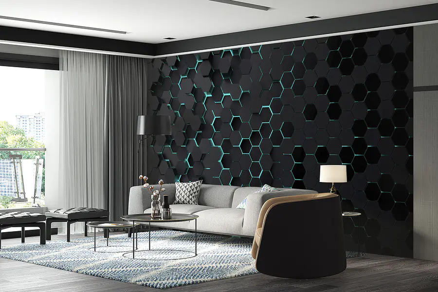 2 recenze Fototapeta Černé a modré šestiúhelníky