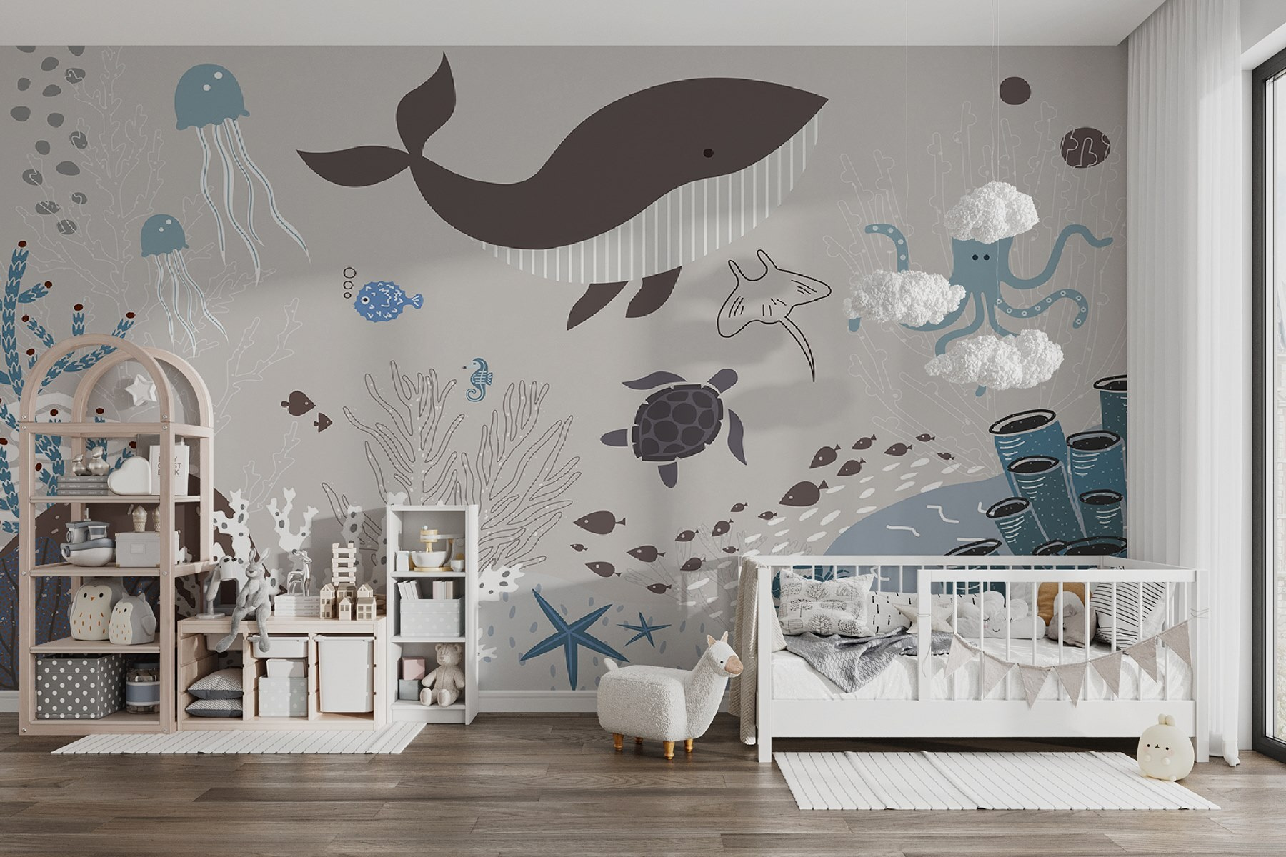 Představte si vzrušený výraz na tváři vašeho děťátka, které usíná obklopené přátelskými mořskými tvory. Není to jen dekorace, je to dobrodružství, každý den. Ať už chcete vyzdobit dětský pokoj nebo dodat šmrnc dětské hře, tato nástěnná malba je to pravé. Roztomilá, uklidňující a super cool – co si nezamilovat?