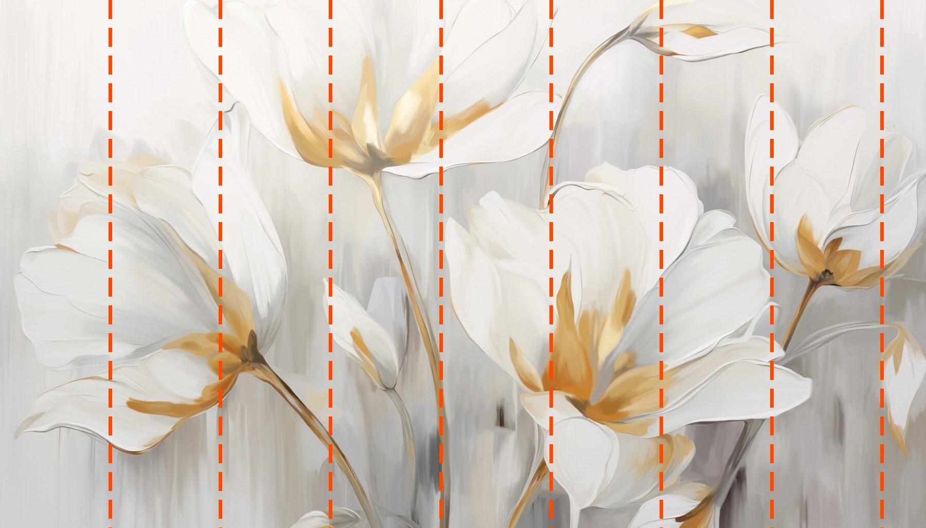 Tapety budou připraveny podle rozměrů uvedených v procesu objednávání. Plátno bude rozděleno na vhodné části, každá o šířce až 50 cm.