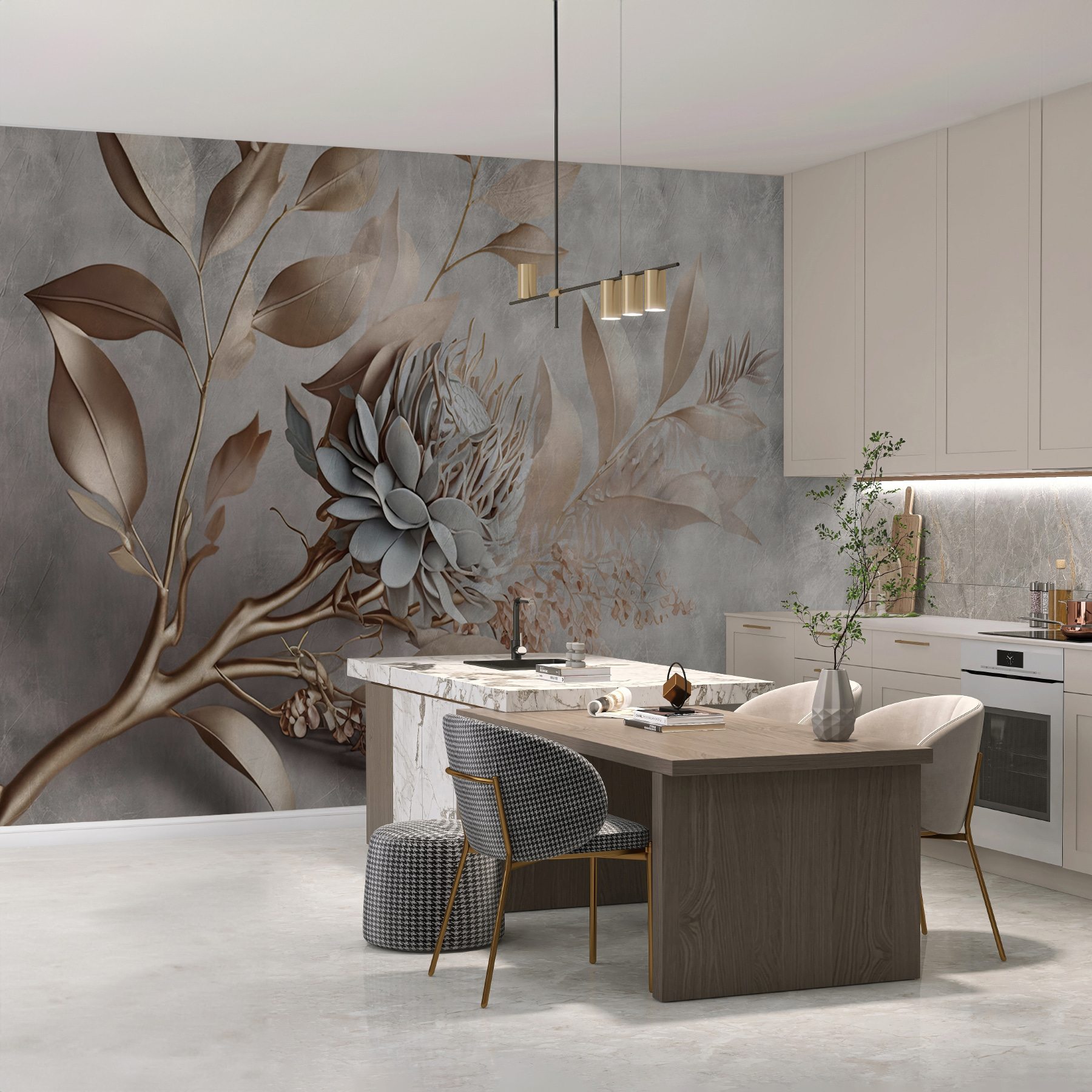 Proměna prostoru může působit jako kouzlo a tato nástěnná malba ho přenese přímo k vám domů. Představte si, že vstoupíte do místnosti, kde elegantní květiny ladně tančí na jemném pastelovém pozadí. Jako by se příroda rozhodla uspořádat na vašich stěnách malý večírek, a kdo by takovou atmosféru nechtěl?