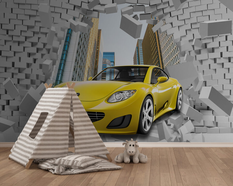 Přemýšleli jste někdy o tom, že byste do svého pokoje vnesli trochu vzrušení? Představte si sportovní auto, které prorazí cihlovou zeď přímo na vaší zdi! Tato nástěnná malba je ideální, pokud máte doma malého automobilového nadšence – nebo dokonce jen někoho, kdo má rád trochu dramatického vkusu. Je součástí kolekcí “Automobil” a “Cihlová zeď”, ale fantasticky se hodí i do dětských pokojů. Energie rozbíjejících se cihel a elegantního žlutého auta dodává obrázku barevnost a akčnost. Je to jako přidat do svého interiéru dávku adrenalinu. Vážně, dokážete si představit, jak se budou tvářit vaši hosté? Totální showstopper.