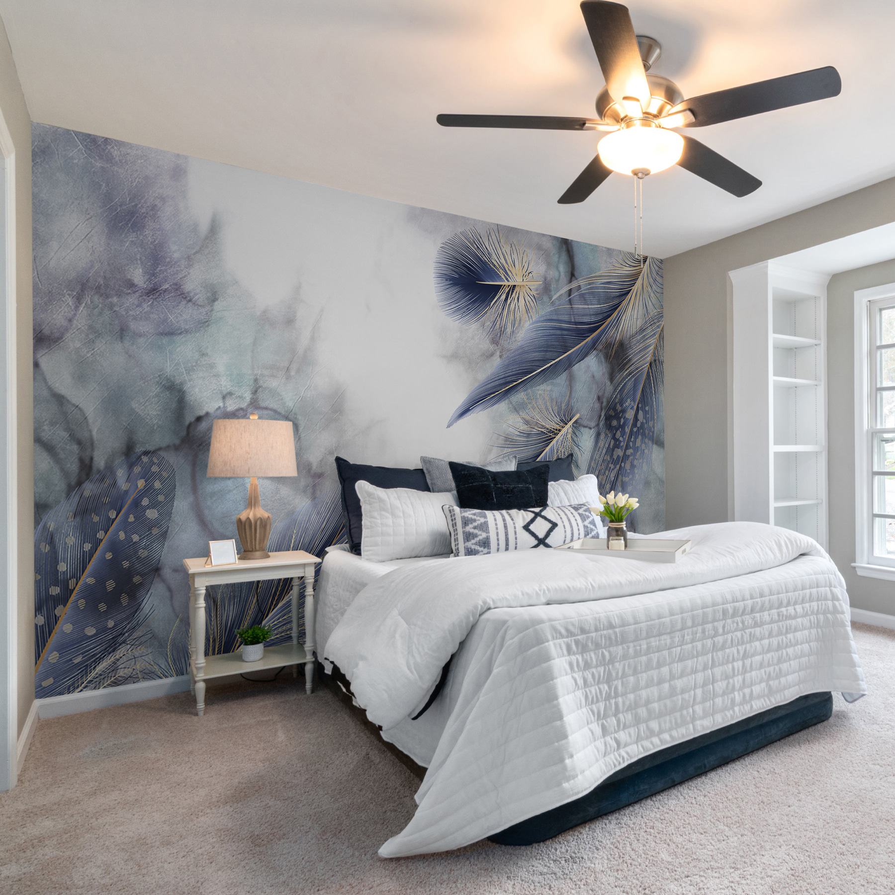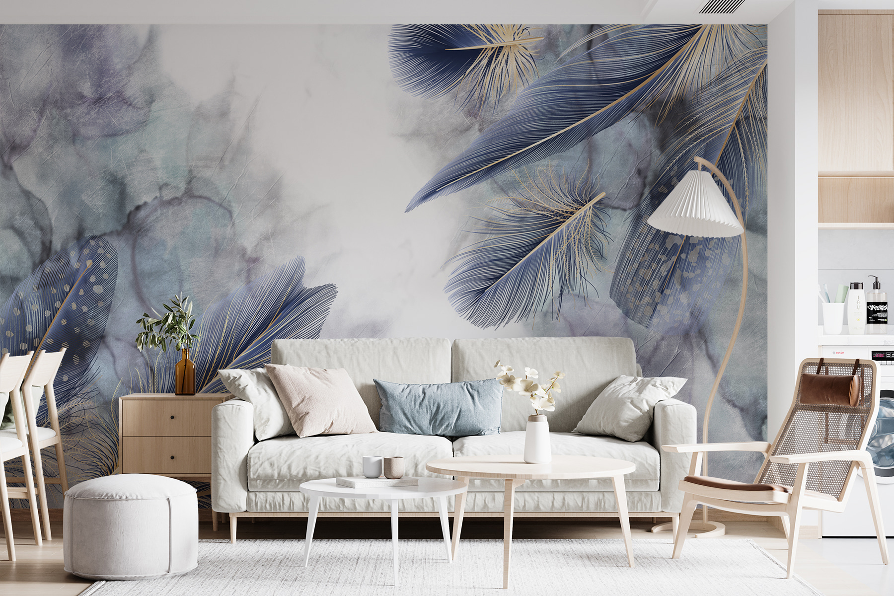 Představte si, že vstoupíte do místnosti, kde elegance poletuje jako jemný vánek. Tato úžasná nástěnná malba s jemným peřím na zasněném akvarelovém pozadí promění každý prostor v klidné útočiště. Je to jako přenést uklidňující atmosféru přírody do interiéru, aniž byste se museli obávat otravného hmyzu nebo pylu.