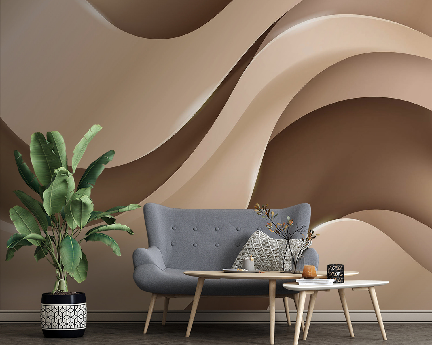 Transforming a space into something special is easier than you think. This wall mural, “Soft, flowing waves in neutral tones,” is like a cozy hug for your walls. Imagine stepping into a room that feels instantly calm—those gentle waves swirl together, creating a serene vibe that whispers relaxation. Perfect for a living room or bedroom, it’s as if your walls are breathing in harmony. Pair it with some lush greens or a comfy sofa, and voilà! Your space feels complete. No need for a seaside getaway when this mural brings those mellow, beachy vibes right home. Plus, who wouldn’t want their walls to look this effortlessly stylish?