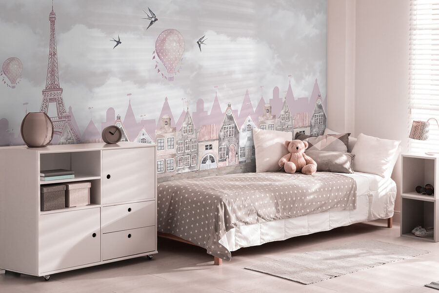 Představte si, že vejdete do místnosti a přivítá vás okouzlující pohled na ptáky vznášející se na rozmarné obloze, lehce se vznášející horkovzdušné balóny a okouzlující střechy jako z pohádky. Tato nástěnná fototapeta “Ptáci létající na obloze” tuto fantazii oživí. Je ideální do dětského pokoje, podněcuje představivost a naplňuje prostor snovou atmosférou. Díky jemným pastelovým barvám a delikátním detailům to není jen nástěnná malba, ale příběh, do kterého můžete vstoupit. Na pozorování těch malých ptáčků je něco tak uklidňujícího, je to jako jemný vánek pro duši. Navíc, kdo by nechtěl mít na stěnách dotek magie? Tato nástěnná malba je rozkošnou směsicí elegance a hravosti – ideální pro vytvoření útulné, kouzelné atmosféry v pokoji každé dcery.