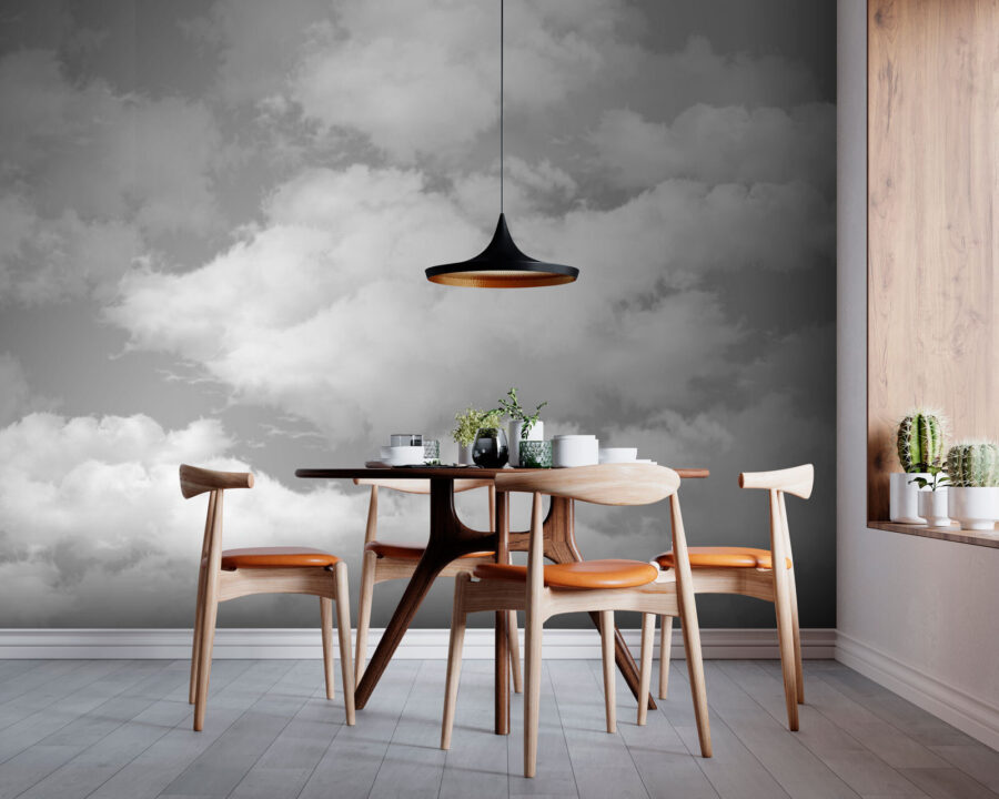 Představte si, že vstoupíte do místnosti, kde nad jemnou šedou oblohou plují nadýchané mraky – zní to snově, že? Tato nástěnná fototapeta přesně to dokáže a přinese kousek klidu přímo do vašeho prostoru. Představte si útulný čtenářský koutek nebo uklidňující ložnici zahalenou v objetí inspirovaném mraky. Je to kulisa, která jemně zahání starosti a našeptává klid.