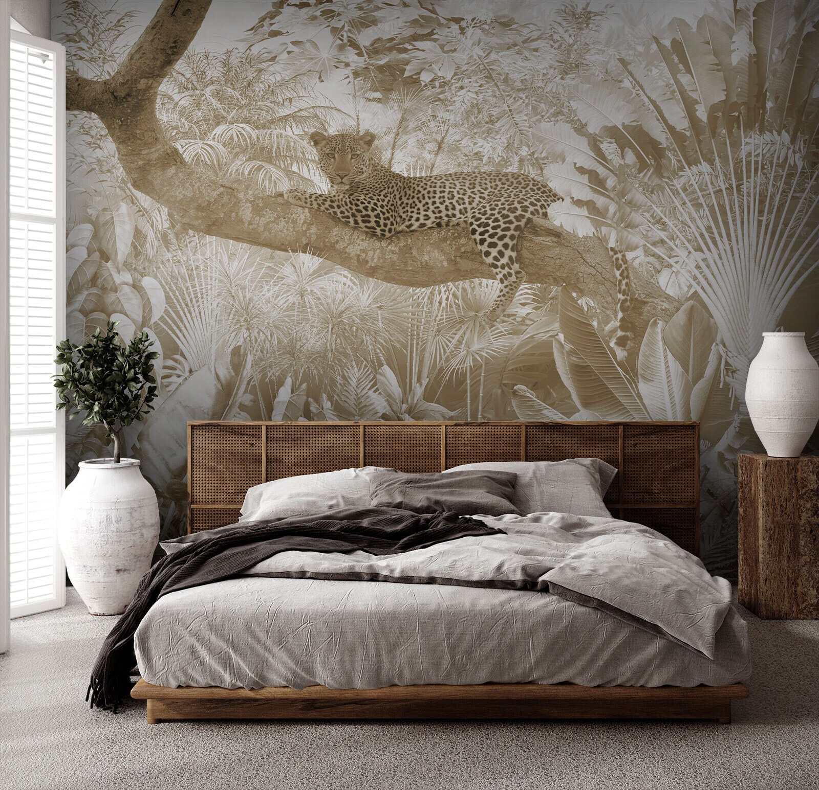 Podívejte se na tuto úžasnou nástěnnou malbu “Leopard odpočívá vysoko v džungli”! Je to jako přenést si kousek divočiny přímo do obývacího pokoje. Detaily jsou tak neuvěřitelné – téměř slyšíte šustění listí a představujete si, jak si tam nahoře leopard líně zdřímne. Ideální pro každého, kdo je blázen do designových tapet nebo chce jen dodat svému prostoru atmosféru džungle. Má bohaté zemité tóny, které působí teple a příjemně, jako byste byli zabaleni do útulného objetí deštného pralesa. Představte si, že se po dlouhém dni vrátíte domů a uvidíte tuto uklidňující scénu. Ahhh, okamžitá relaxace. A to nejlepší? Nemusíte letět do Amazonie, abyste získali tu exotickou atmosféru – stačí si ho přivinout na zeď a jste tam!