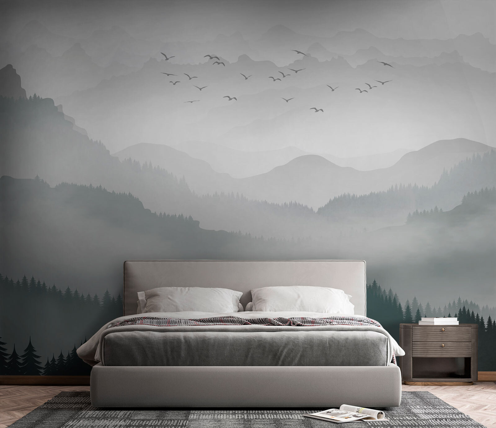 S nástěnnou malbou “Hejno ptáků létajících na obloze” proměníte každou místnost v klidné útočiště. Představte si to: vejdete do svého prostoru a bum, je to tam – úchvatný výjev jemné oblohy a mírných hor, nad kterými volně plachtí ptáci. Je to jako přenést si kousek přírody dovnitř, ale bez zablácených bot a brouků. Uklidňující šedé tóny dokážou navodit pocit klidu i v tom nejchaotičtějším dni. Představte si, že zde popíjíte ranní kávu a svět je o něco jemnější. Ideální pro ty, kteří ocení umění, jež vdechne jejich domovu život a klid. Není to jen dekorace, je to pozvánka k odpočinku a snění. Jen se nedivte, když se hosté zastaví, aby se pokochali výhledem – protože kdo by to neudělal?