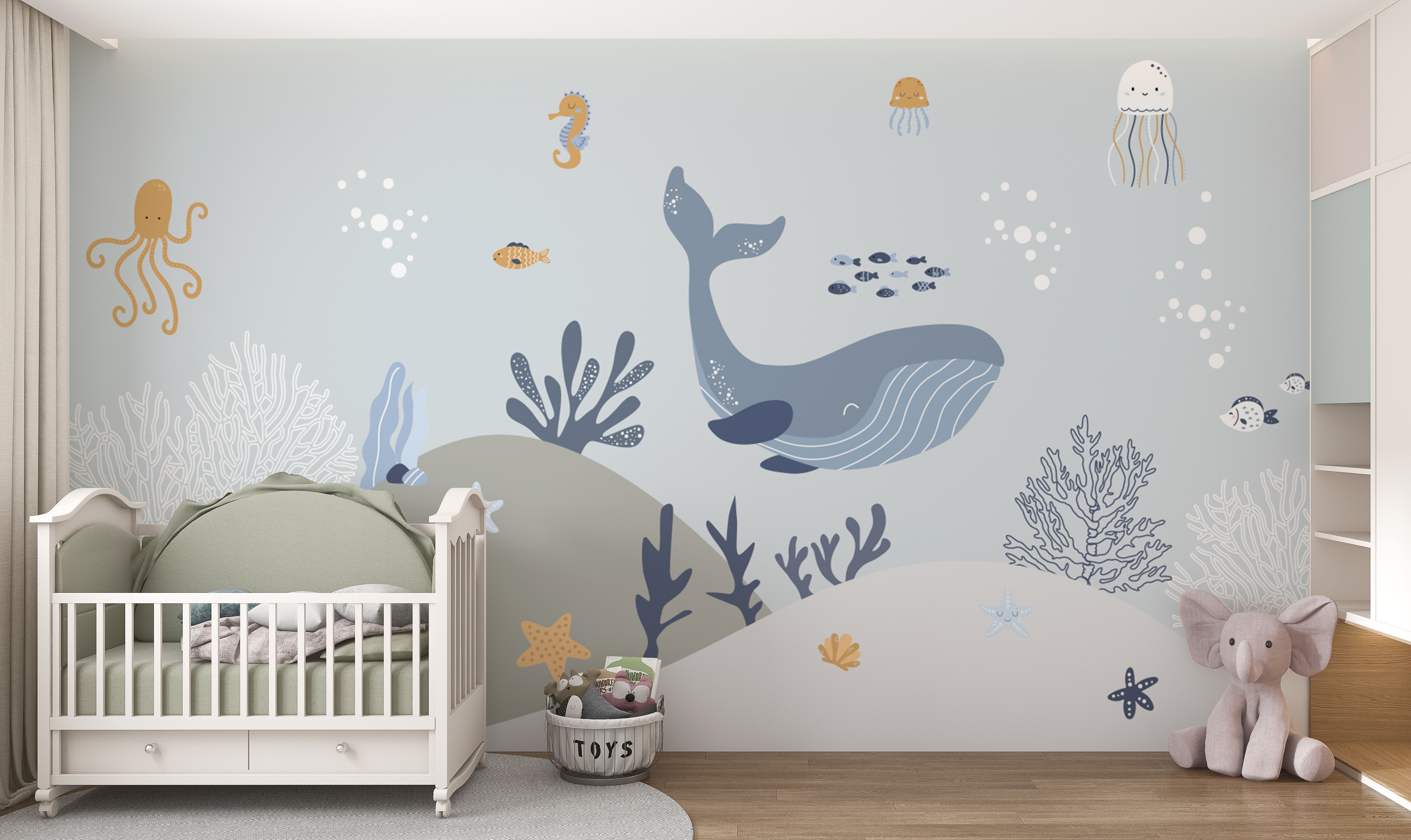 Přidáním této nástěnné malby by se příběhy o podmořských kamarádech před spaním mohly stát ještě napínavějšími. Rozkošné chobotnice, velryby a mořské hvězdice jako by téměř ožily a zvou děti na nesčetná imaginativní dobrodružství. Jemné barvy a přátelská zvířátka navíc vytvářejí dokonalou kulisu pro čas spánku i hraní.