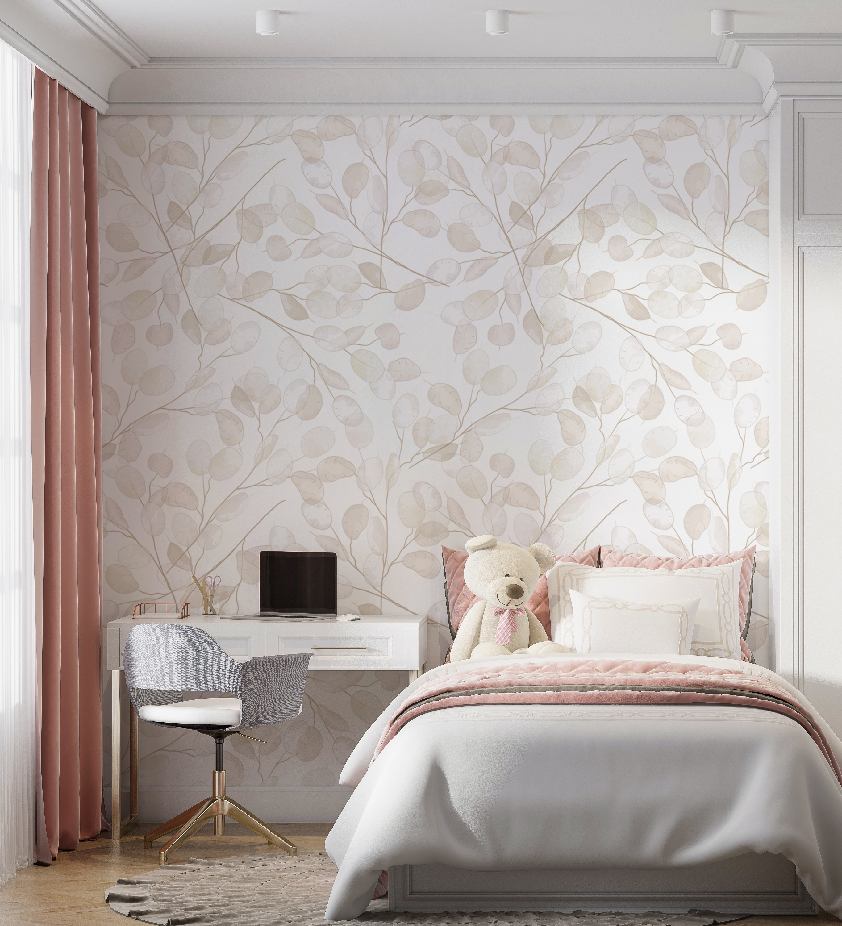 Proměňte jakýkoli prostor pomocí této okouzlující nástěnné malby s jemnými a decentními rostlinnými vzory. Je to jako přenést šepot přírody do interiéru – ideální pro dětský pokoj nebo pokojíček holčičky. Představte si to: vaše dítě se dívá na tyto jemné listy a sní o dobrodružstvích v kouzelných lesích nebo motýlích tancích. Jemné barvy vytvářejí klidnou atmosféru, která je útulným útočištěm po dni plném smíchu a her. Není to jen dekorace, je to plátno pro fantazii! Tato nástěnná malba vybízí k vyprávění příběhů, chichotání a sladkému snění, díky čemuž bude každý okamžik v pokoji o něco výjimečnější. Jen si představte ty úsměvy!