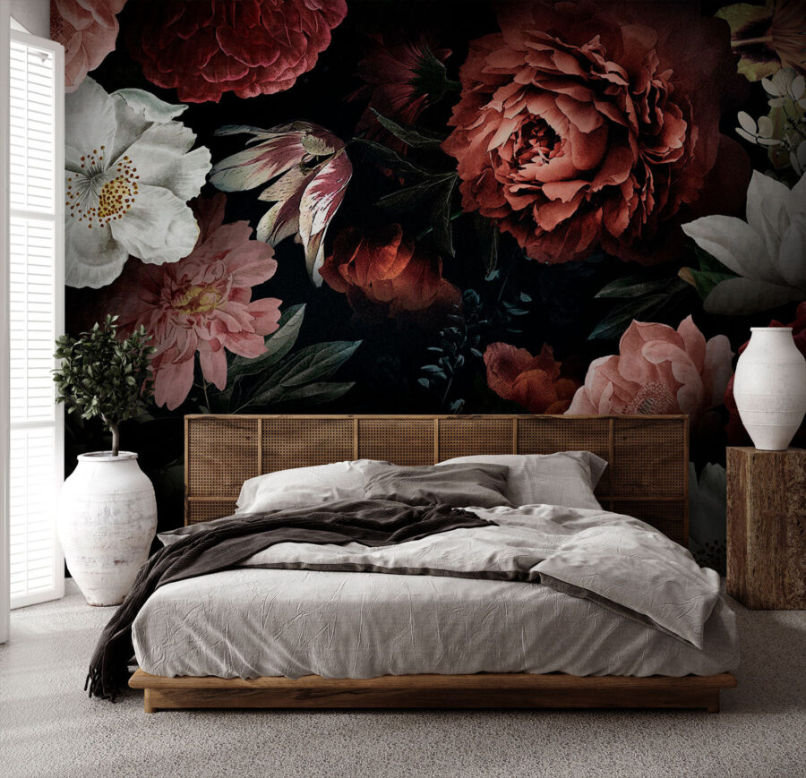 Proměňte každou místnost v útulné útočiště pomocí této úžasné nástěnné malby s tmavou květinovou elegancí a rozkvetlou krásou. Zářivé květy vystupují na hlubokém pozadí a vytvářejí příjemnou atmosféru, která působí jako tajná zahrada. Představte si, že při pohledu na toto umělecké dílo popíjíte kávu – každý okvětní lístek jako by šeptal příběhy o jaru a obnově. Je ideální pro ty, kteří ocení dotek přírody, aniž by museli opustit dům. Není to jen tapeta, je to zážitek, který promění všední stěny v živé plátno plné života a radosti. Dodejte svému prostoru trochu dobrodružství!