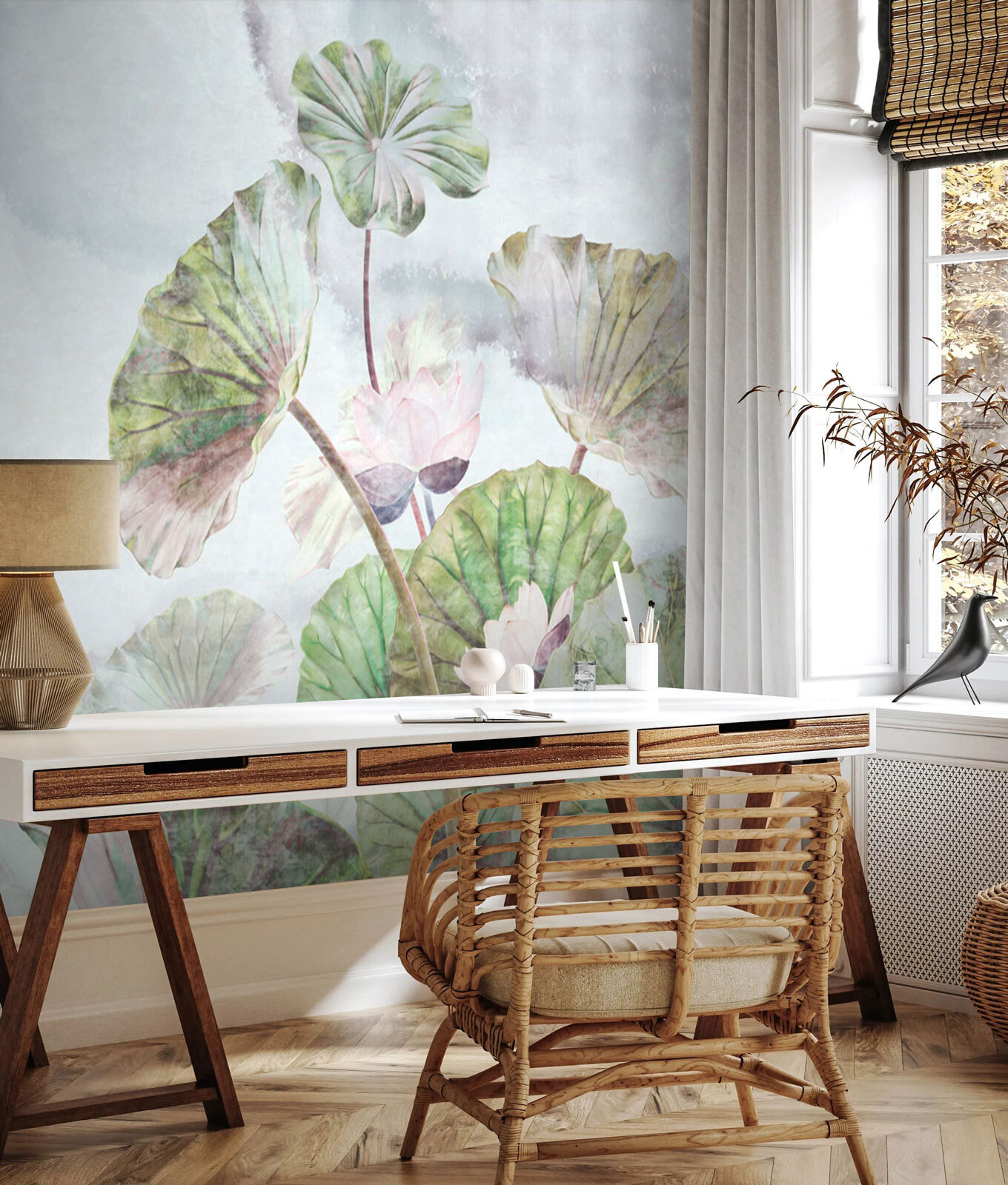 Představte si, že hostíte přátele a oni obdivují nástěnnou malbu. Pokoj se okamžitě promění v útočiště – mini dovolenou přímo u vás doma. Jemné akvarelové tóny vytvářejí příjemnou atmosféru a každý pohled na tuto nástěnnou malbu je jako závan čerstvého vzduchu. Kdo by nechtěl, aby jeho prostor rozjasnil malý opeřený přítel? Toto dílo promění stěny v příběhy, které vyvolávají radost a fantazii.