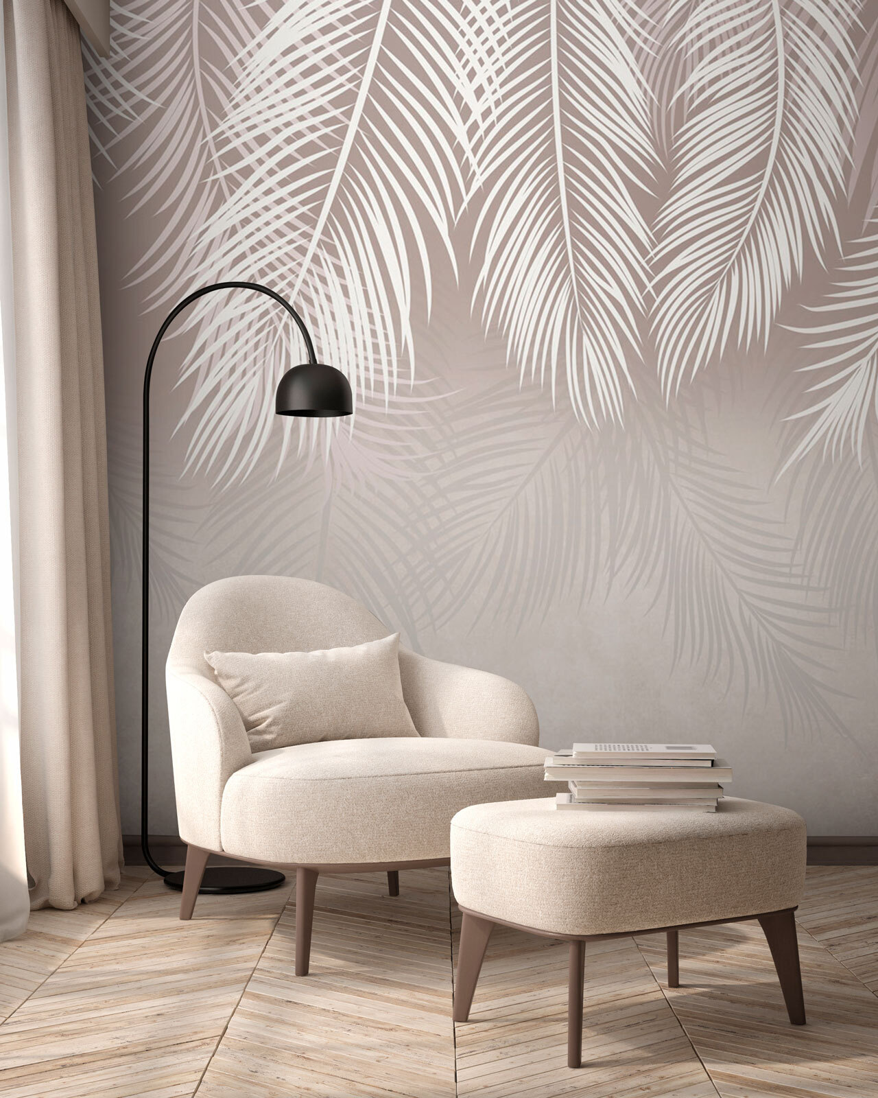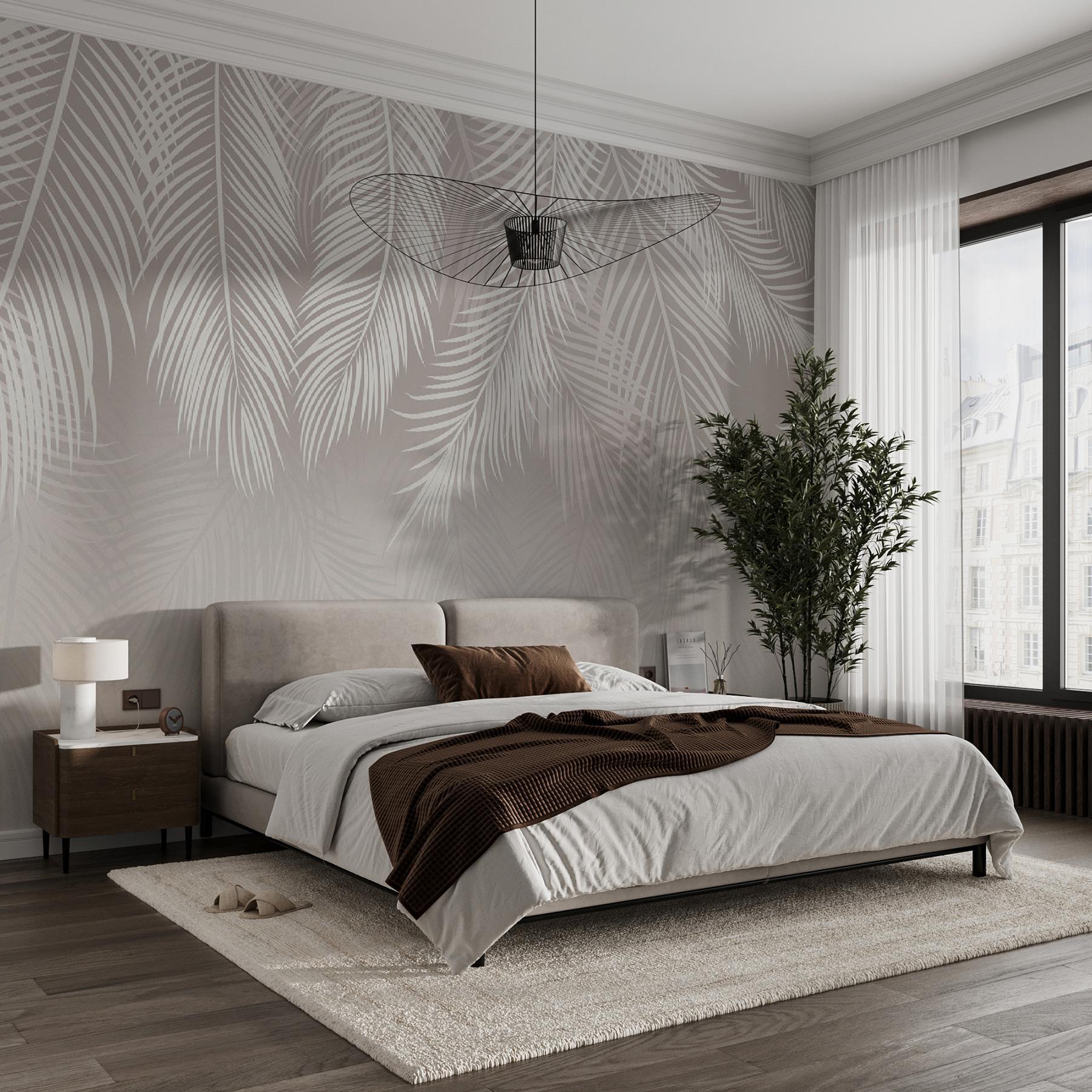 Proměňte svůj prostor pomocí této elegantní nástěnné malby se vzorem palmových listů, která je dokonalou kombinací klidu a stylu. Představte si, že vstoupíte do místnosti, která při každém pohledu našeptává relaxaci. Měkké, jemné listy vytvářejí uklidňující kulisu, jako byste vstoupili do klidného tropického ráje, aniž byste opustili svůj domov. Je to jako mít miniaturní dovolenou přímo na stěně. Přátelé se možná zeptají, jestli jste si nainstalovali okno do nějaké svěží zahrady. Tato nástěnná malba, která je ideální pro útulný čtecí koutek nebo živý obývací pokoj, přináší do interiéru závan čerstvého vzduchu a dotek přírody.