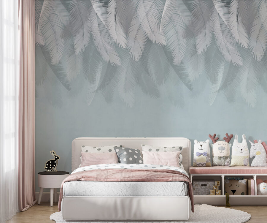 Představte si, že vstoupíte do útulné místnosti a přivítají vás jemná bílá peříčka vznášející se na pozadí jemně modré barvy. Tato tapeta není jen dekorací, je to malý kousek klidu, který váš prostor zahalí do klidné atmosféry. Je ideální do ložnice nebo čtecího koutku a působí jako jemný vánek v teplém dni. Fantazijní design evokuje sny a dobrodružství, možná dokonce let horkovzdušným balónem přes cukrové vaty. Je to druh umění, který vás zve k zastavení, zhlubokému nadechnutí a úniku od shonu na chvíli. Ať každý pohled vyvolá úsměv!