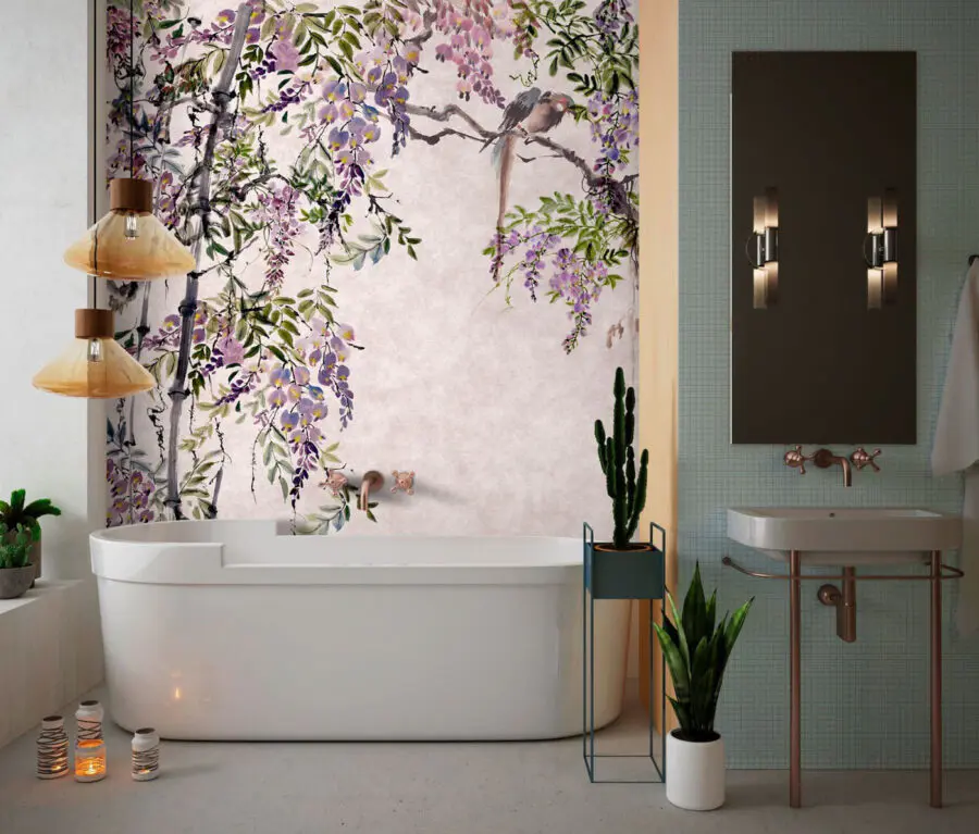 Musíte se podívat na tuto “Nástěnnou malbu ptáků na větvi”! Představte si, že popíjíte ranní kávu pod rozkvetlým baldachýnem a z větví vám k tomu křehcí ptáčci zpívají serenády. Přesně takovou atmosféru vyvolává tato nástěnná malba – klidnou a okouzlující. Jemné lila a zelené odstíny jsou jako jemný šepot jara, ideální pro vdechnutí života do každé místnosti.