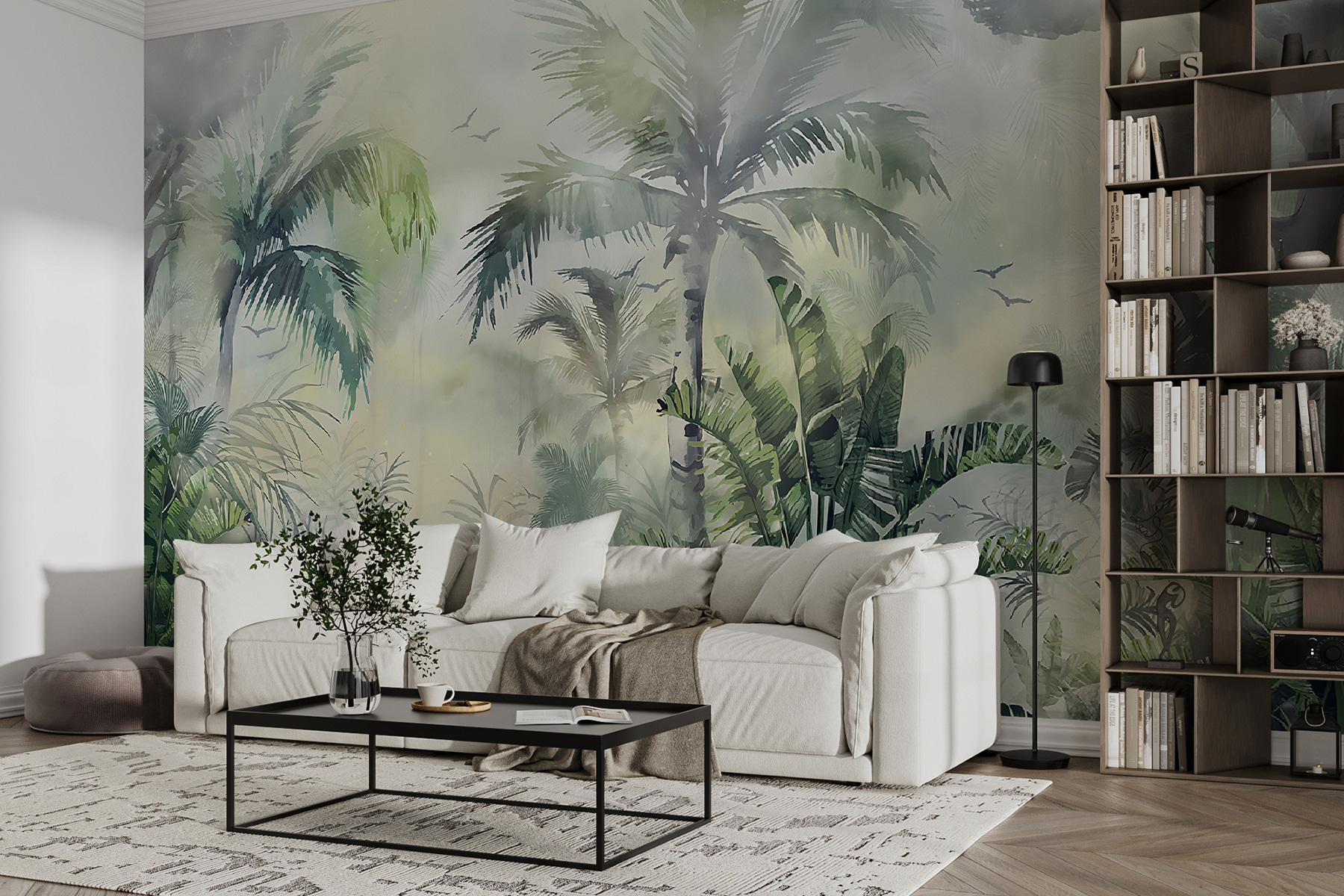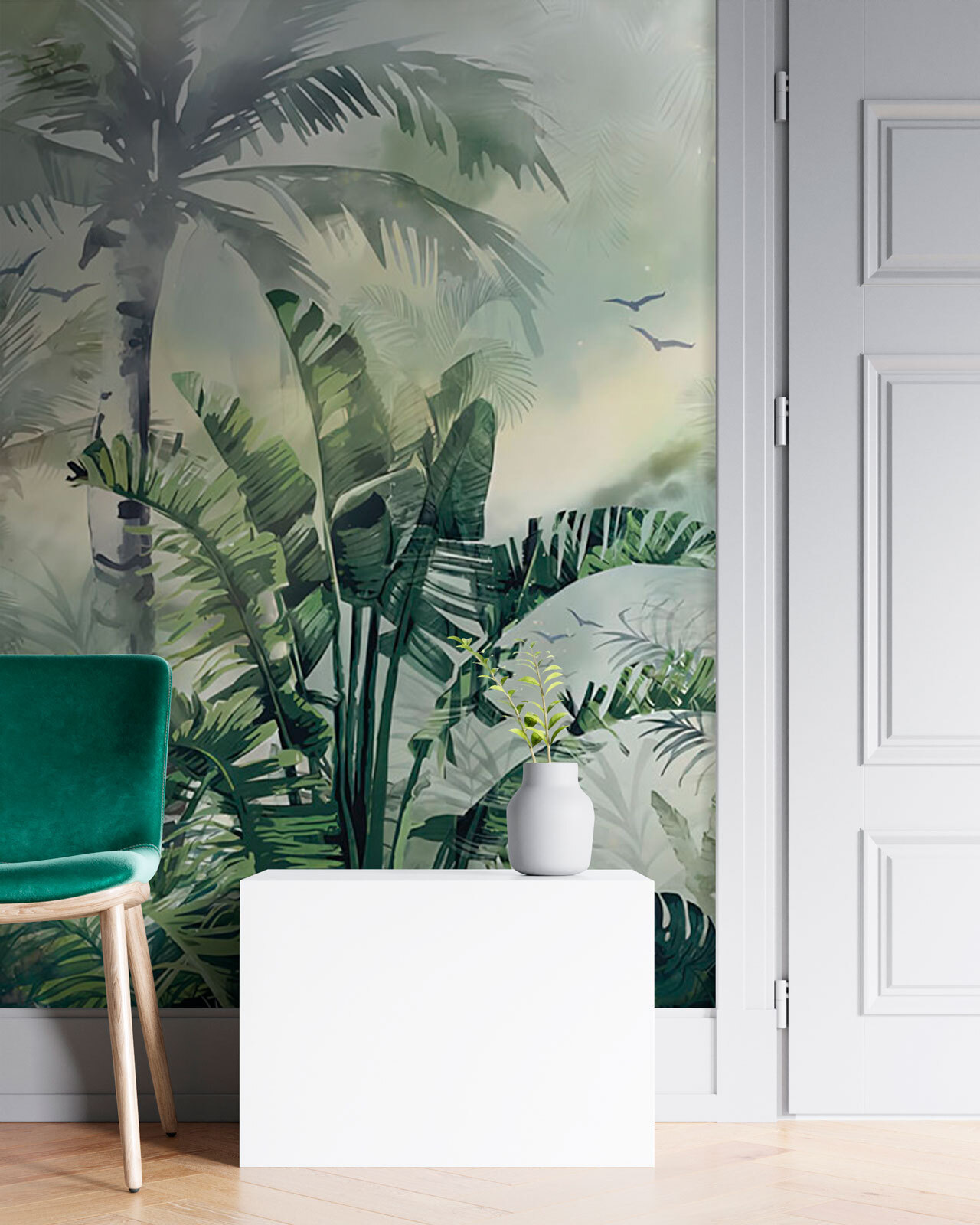 S touto úžasnou nástěnnou malbou mlžné džungle proměníte každou místnost v bujný ráj. Představte si, jak se procházíte hustým listím a vdechujete čerstvý vzduch – ach, ten klid! Je to jako mini dovolená přímo u vás doma, ale bez stresu z cestování. Měkká zeleň a jemné chuchvalce mlhy vybízejí ke klidným vibracím, které jsou ideální pro útulný čtecí koutek nebo klidné únikové místo v ložnici. Navíc, kdo by se nechtěl každý den cítit, jako by popíjel drink na tropické dovolené? Připravte se na dobrodružství v divočině, a to vše z pohodlí vašeho gauče.