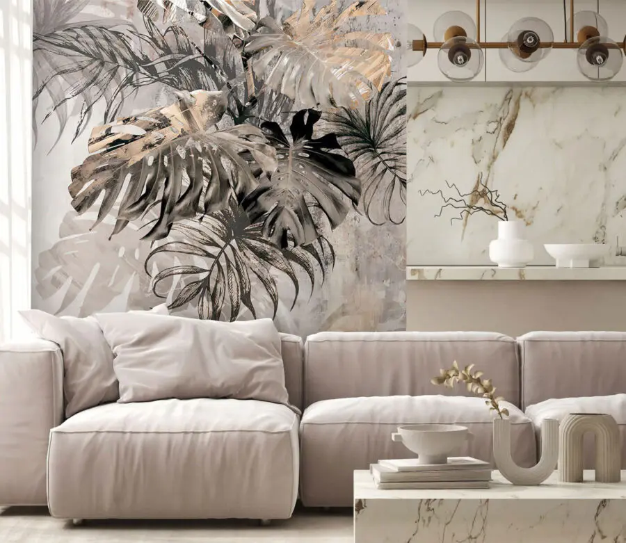 Chcete svému prostoru dodat nádech sofistikovanosti? Seznamte se s nástěnnou malbou “Abstraktní tropické listy v odstínech šedi”. Představte si svěží, umně načrtnuté listy v uklidňujících odstínech šedé, které se bez námahy začlení do každé místnosti. Tohle není jen tapeta – je to prohlášení. Ideální pro ty, kteří chtějí vnést nádech tropů bez obvyklých výrazných barev.
