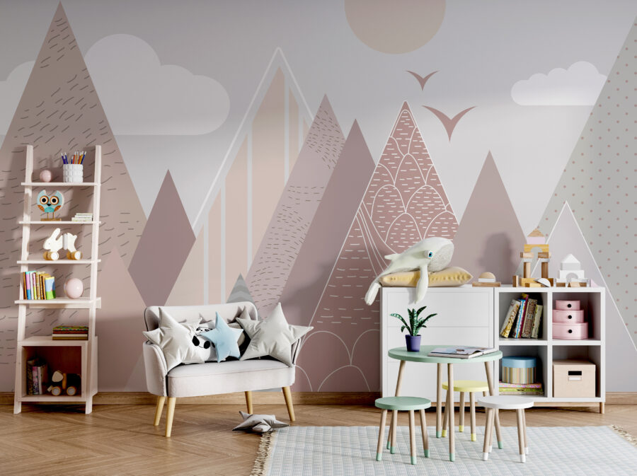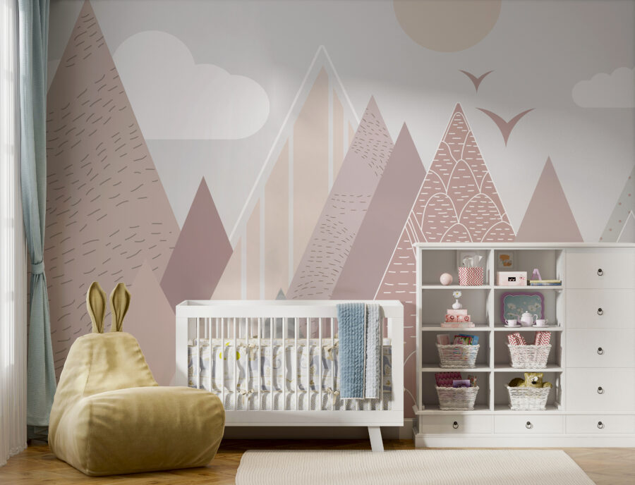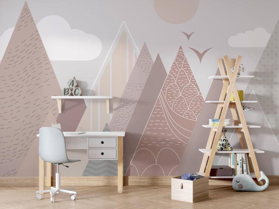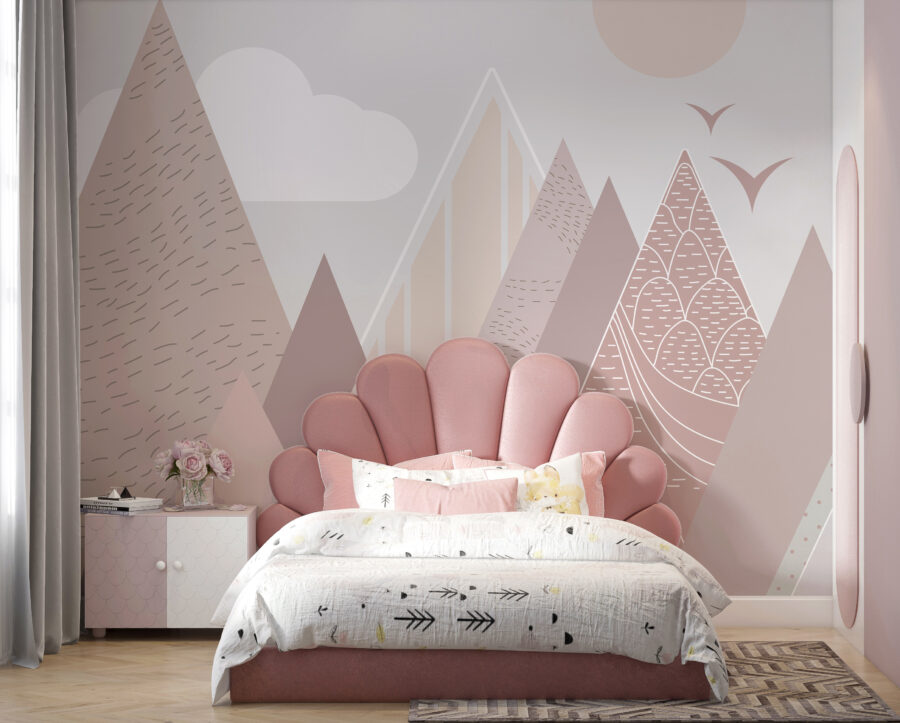 Představte si, že vejdete do místnosti a okamžitě pocítíte klid a rozmar – něco jako útulné snění. Nástěnná fototapeta “Geometrické hory s poletujícími ptáky” přesně tohle dokáže. Díky hravým pastelovým horám a přátelským létajícím ptákům vnese do každého dětského pokoje milou a klidnou atmosféru. Skvěle se hodí do dětských pokojů a dětských pokojíčků, kde rozprašuje trochu kouzla, aniž by byla příliš výrazná.