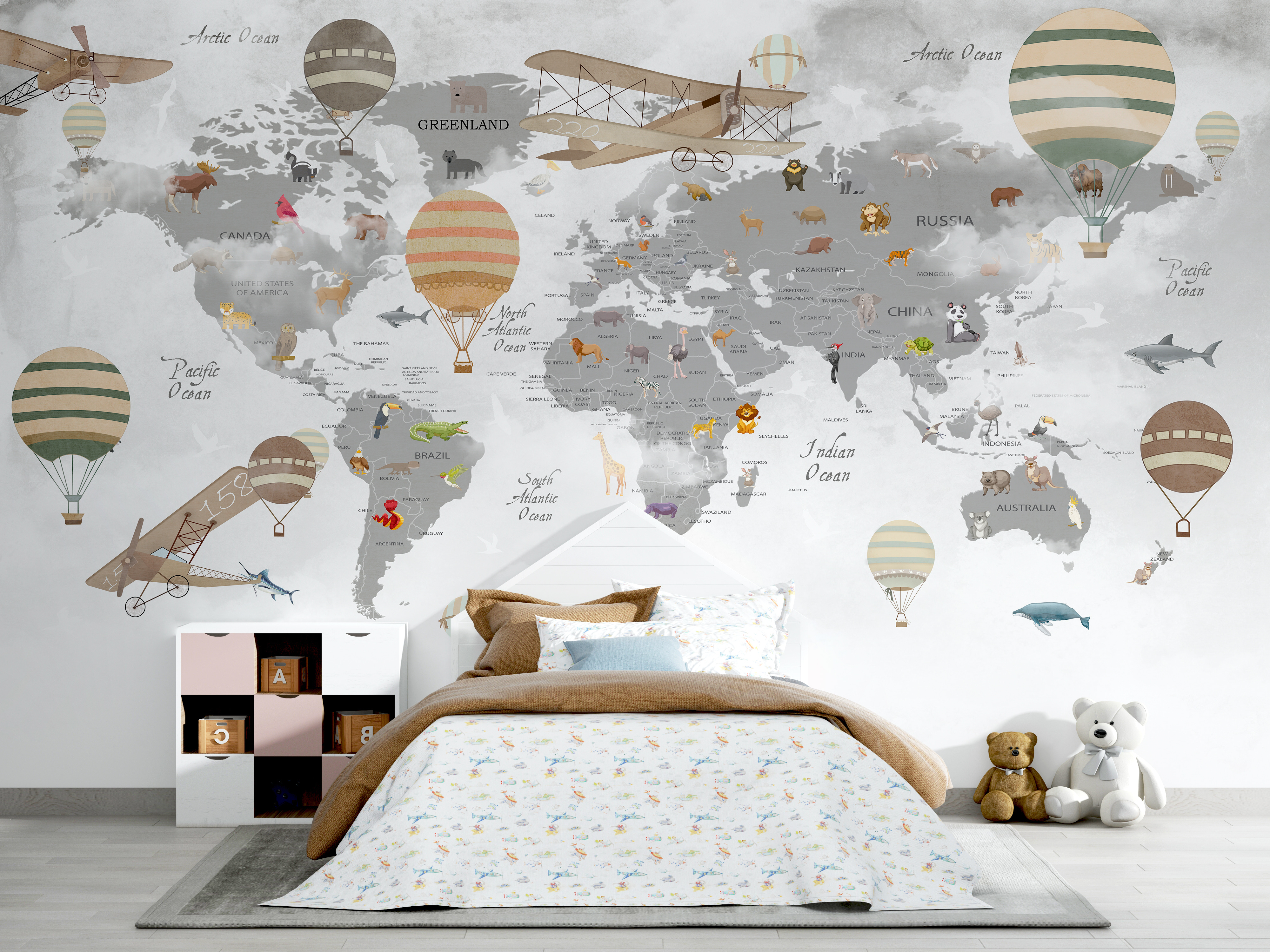 Představte si to – váš malý dobrodruh se probudí v pokoji plném rozmarných horkovzdušných balónů vznášejících se nad starodávnou mapou! “Horkovzdušný balón se žralokem v pozadí” je nepředvídatelná, okouzlující nástěnná malba, která je ideální pro vzbuzení zvědavosti. Nejde jen o zeměpis, je to jako příběh, který čeká na své rozvinutí. Představte si pohádky před spaním o cestování po světě, setkávání se zvířaty a tajném pozorování toho drzého žraloka. Je ideální pro děti, které sní ve velkém, a promění jakýkoli prostor v hravou startovací plochu pro fantazii. Je to zábava, poučení a nádech vintage kouzla, to vše v jedné báječné nástěnné dekoraci!