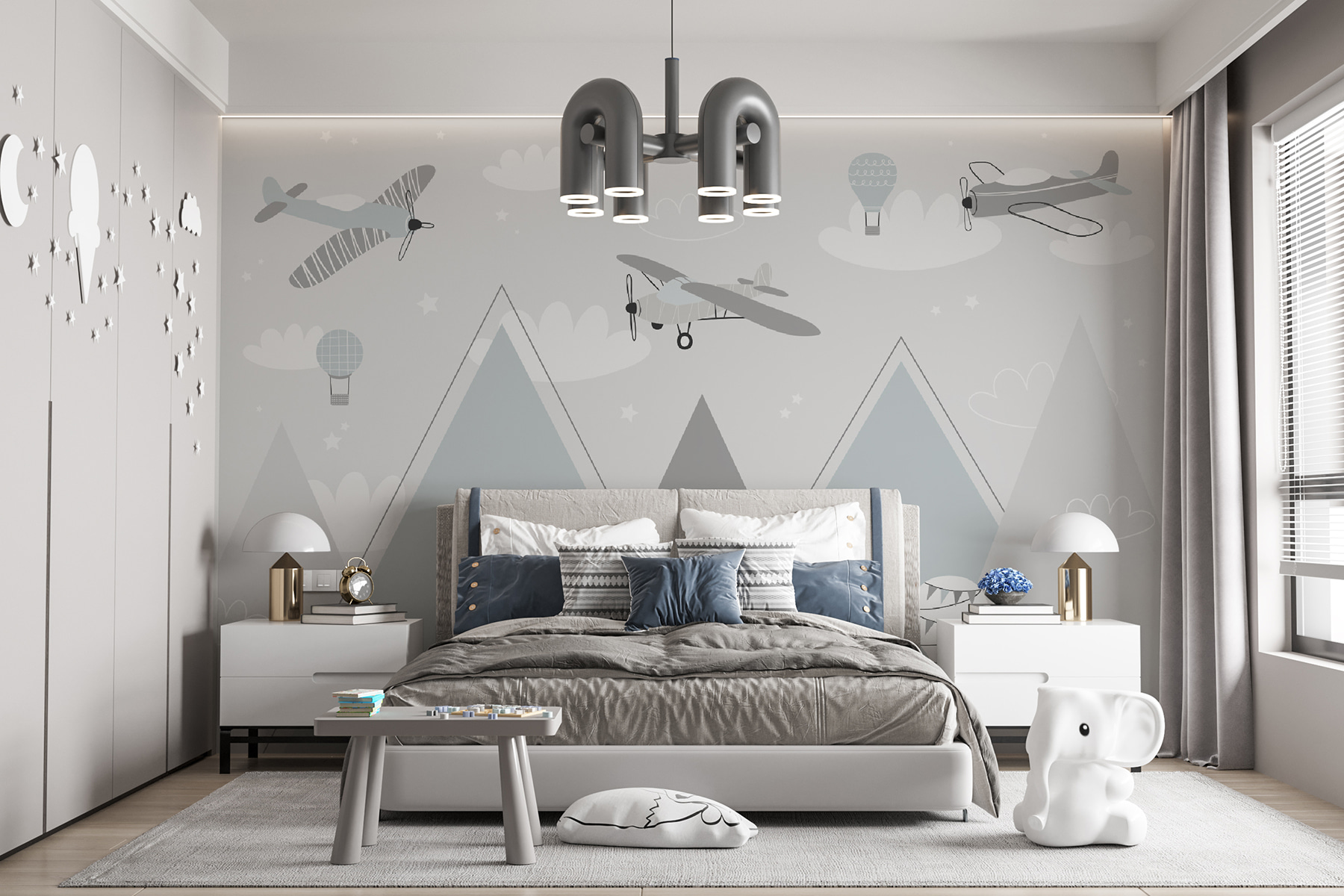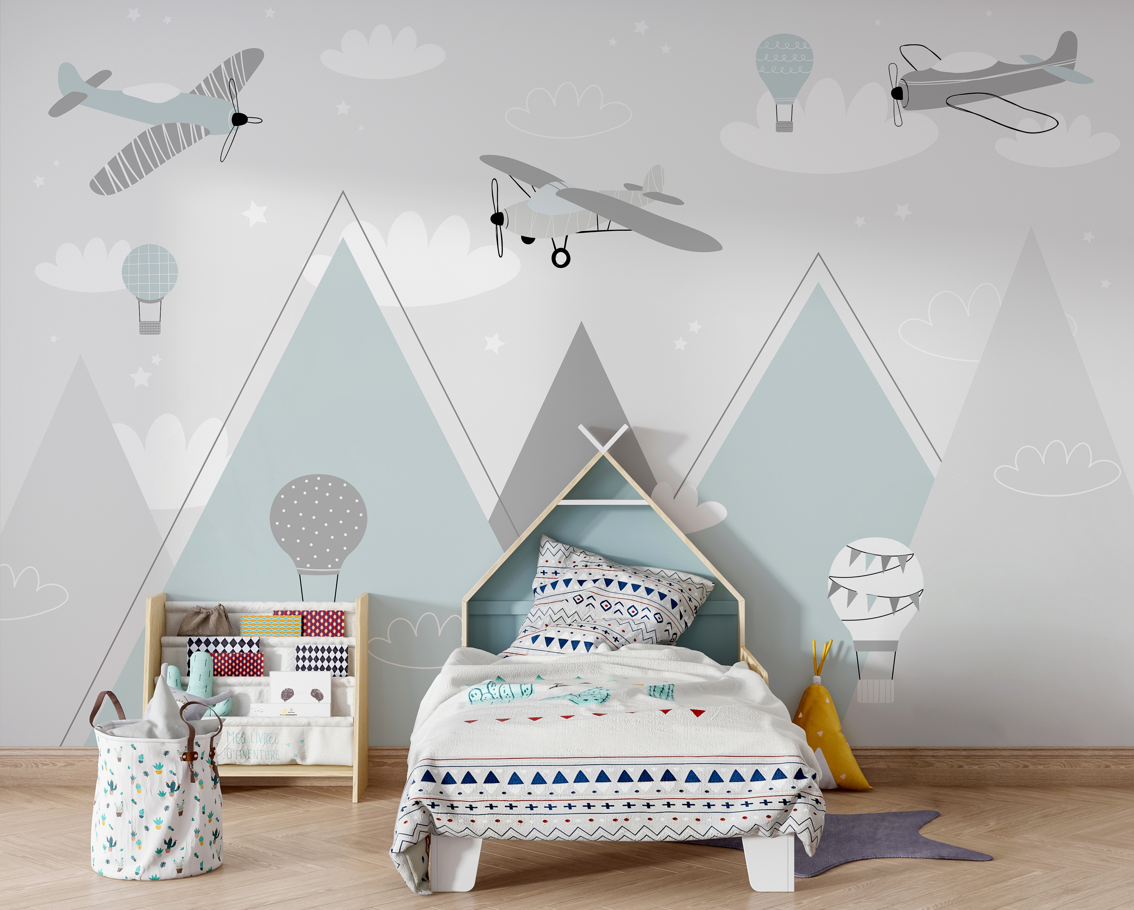 Představte si, jak se pokoj vašeho dítěte okamžitě promění díky této nádherné fototapetě plné historických letadel a náladových horkovzdušných balónů. Je to jako vstoupit do snového, pastelově zbarveného dobrodružství – oblohy plné něžných příběhů, které čekají, až se rozvinou. Pokaždé, když se na něj vaše dítě podívá, jeho představivost se možná vznese vysoko nad tyto okouzlující hory. Ideální pro syny, dcery, kojence nebo kohokoli, kdo má rád trochu rozmarné zábavy. Kdo by také odolal těm rozkošným vzorům? Není to jen dekorace – je to cesta do pokoje. Představte si, že příběhy na dobrou noc odlétají obklopené touto klidnou a hravou scénou. Šťastnou cestu do říše snů!