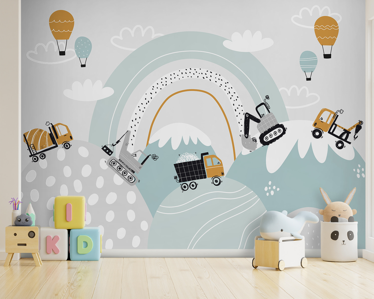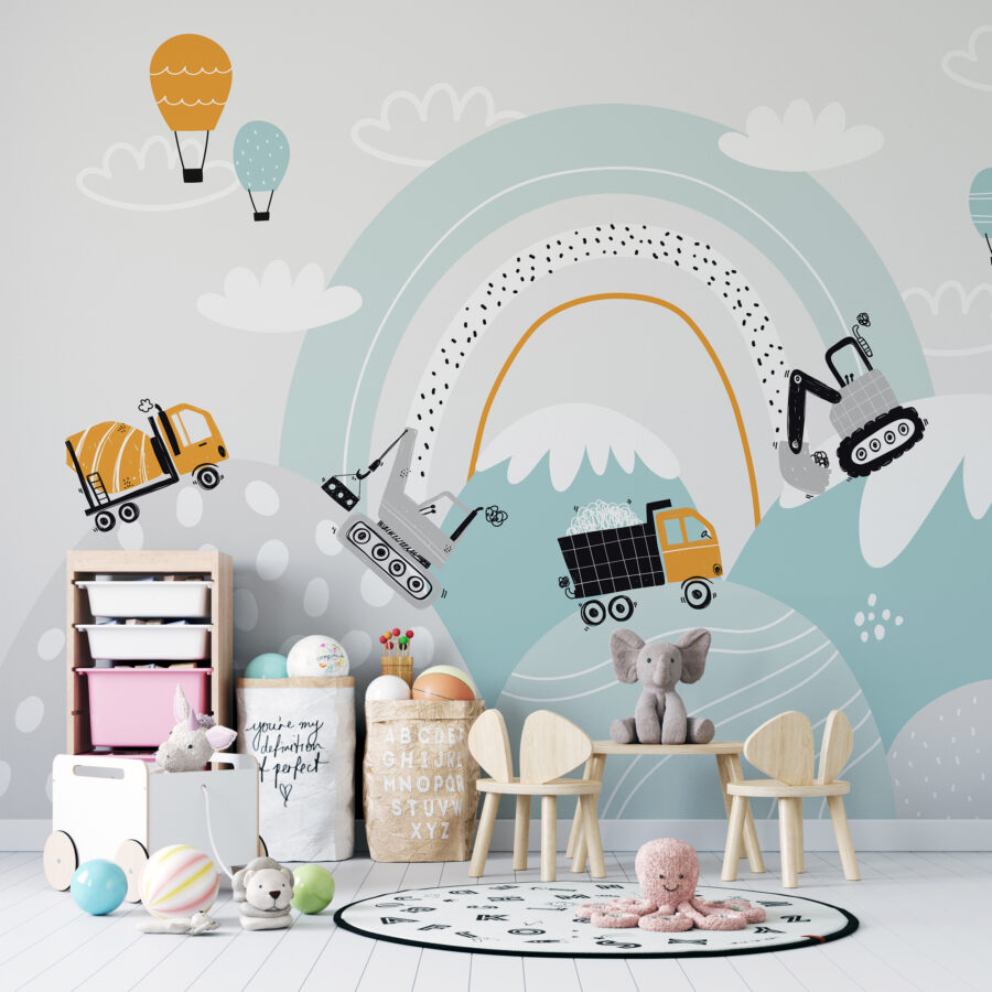 Není tato nástěnná malba prostě nádherná? Je to jako malý svět pro vaše dítě, plný stavebních dobrodružství. Představte si to: zářivé míchačky na cement, veselé mraky a roztomilé malé bagry, které se prohánějí po kopcích. Má to hravou, rozmarnou atmosféru, která rozzáří každý pokoj. Je ideální pro děti a podněcuje jejich fantazii. A ty pastelové barvy – vážně, mohou být ještě dokonalejší? Představte si, jak se budou chichotat, až budou snít o tom, že si postaví vlastní krajinu. Tato nástěnná malba není jen dekorace, je to vylepšení vašeho domova pro štěstí!