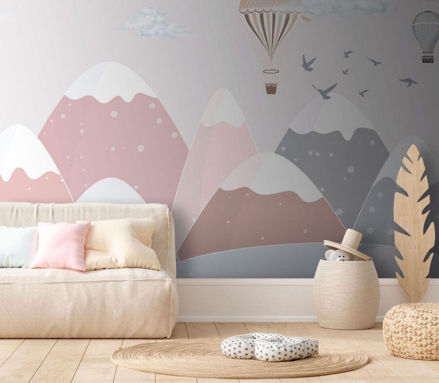 Dokážete si pod touto freskou představit pohádky na dobrou noc? Vyprávění příběhů o cestách horkovzdušným balonem nad horami. Má tento nadčasový, klasický vzhled, ale s jemným, moderním nádechem. Ne nadarmo je právě v těchto “oblíbených nástěnných malbách”. Prostě rozzáří prostor šarmem a teplem.