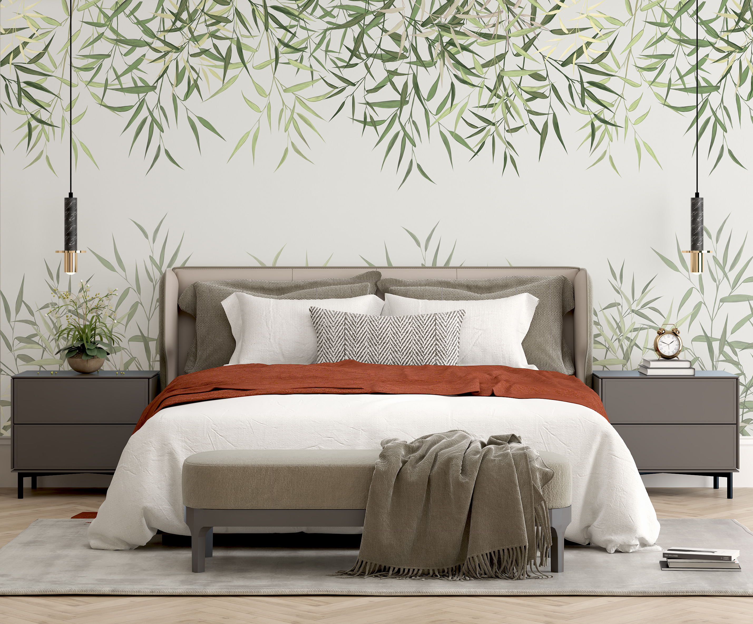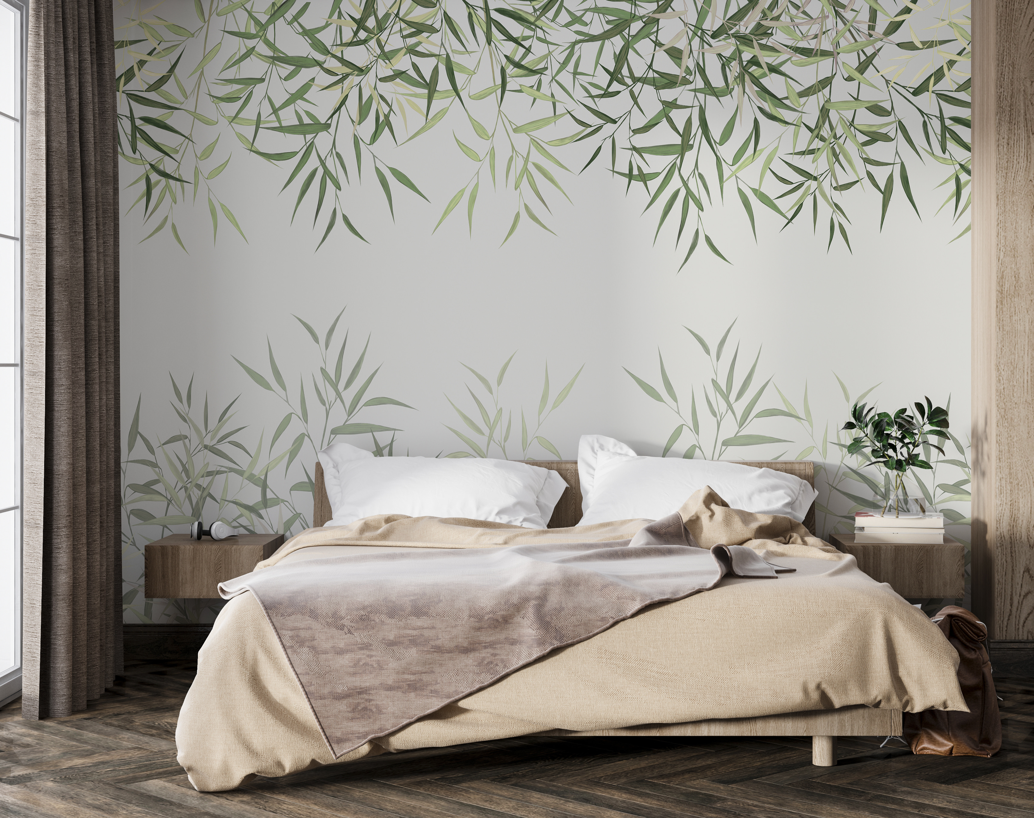 Proměňte svůj prostor pomocí této okouzlující nástěnné malby, kde listy vytvářejí úžasný přírodní rámeček. Představte si, že pokaždé, když vejdete do místnosti, vstoupíte do oázy klidu – tato jemná zeleň dokáže uklidnit i ty nejzaměstnanější mysli. Ať už se jedná o útulný obývací pokoj nebo veselou kuchyni, tato nástěnná malba dodá dotek přírody, aniž byste potřebovali zelený palec. A buďme upřímní, komu se nelíbí představa, že jeho stěny zdobí listnaté kouzlo? Je to jako pozvat si malý les přímo k sobě domů – aniž by kolem vás bzučel otravný hmyz. Tento design je ideální pro ty, kteří mají rádi osvěžující atmosféru, a jistě rozjasní stěny i náladu.