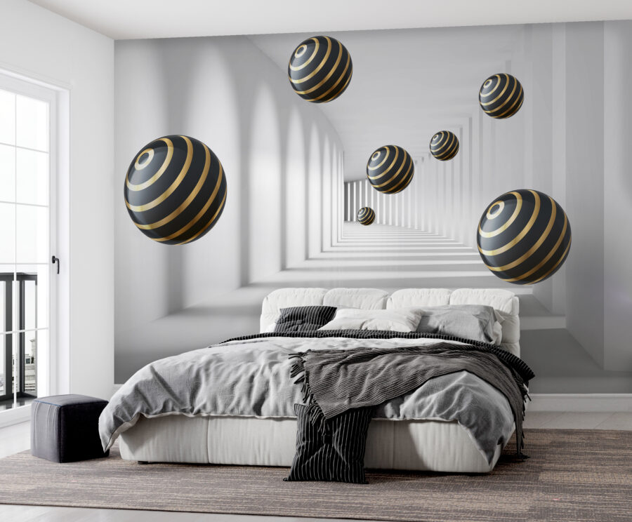 Představte si, že vejdete do místnosti a máte pocit, že jste vstoupili přímo do jiné dimenze. Přesně to dokáže nástěnná malba “Pruhované koule vznášející se v bílé chodbě”. Je to tento moderní, téměř hypnotický design, díky kterému si budete připadat jako ve futuristickém tunelu. Koule se svými elegantními pruhy jako by se vznášely bez námahy a vytvářejí pocit hloubky, díky kterému se váš prostor může skutečně zdát větší. Je to trochu jako mít vlastní malý sci-fi film přímo na zdi!