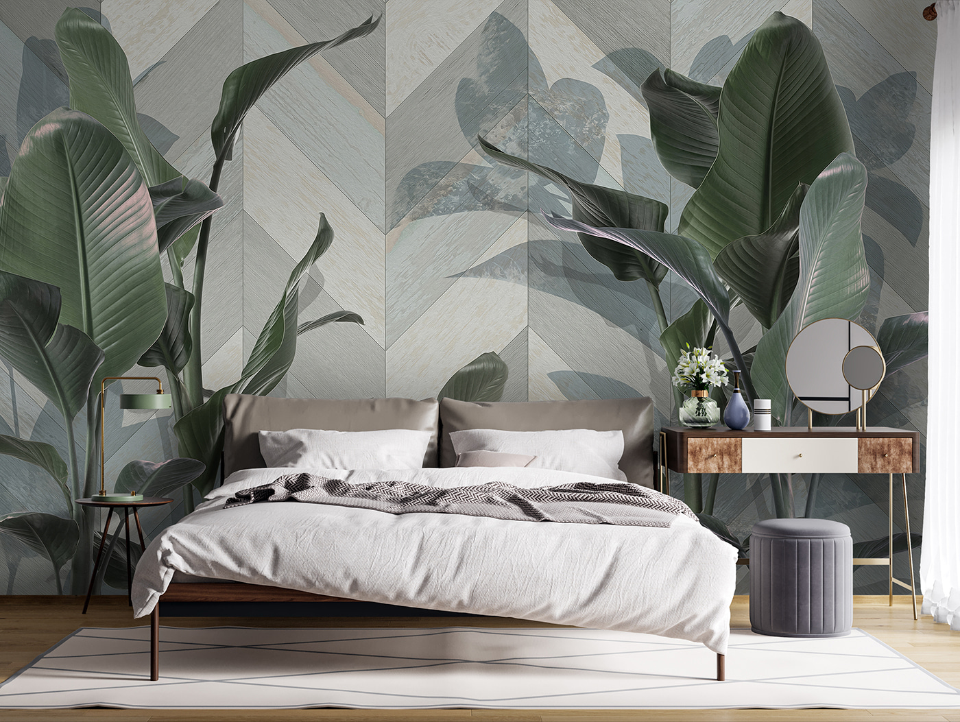 Proměňte každou místnost pomocí této úžasné nástěnné malby se svěžími zelenými listy na elegantním vzorovaném pozadí. Je to jako přenést klid lesa přímo do vašeho obytného prostoru! Představte si, že se každé ráno probudíte a budete se cítit jako v útulné chatě obklopené přírodou. Listová dobrota dodává osvěžující atmosféru, která je ideální pro dny, kdy toužíte po troše pobytu venku bez hmyzu a starostí s počasím. Jemné vzory navíc udržují věci zajímavé – nikdo nepozná, jestli o tropickém útěku jen sníte, nebo ho skutečně prožíváte! Tato nástěnná malba není jen dekorace, ale zážitek, který na vás čeká.