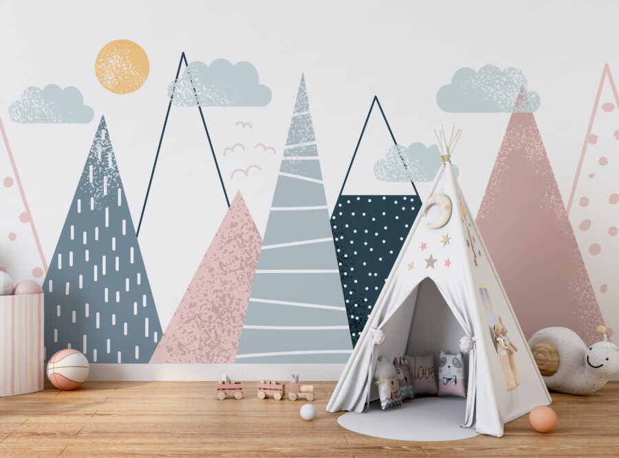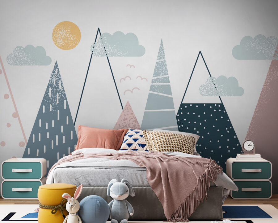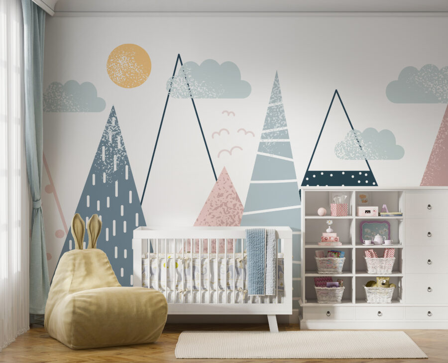 S touto nádhernou nástěnnou malbou s geometrickými horami pod jasnou oblohou ozářenou sluncem přenesete venkovní krajinu do interiéru. Je to jako mini dovolená na stěnách, ideální pro rozvíjení fantazie v dětských pokojích nebo herních koutcích. Díky těmto jemným barvám v kombinaci s náladovými vzory je skutečně okouzlující. Představte si, jak malá ratolest usíná a sní o horských dobrodružstvích nebo mracích, které šeptají příběhy – sladké, že? Navíc je to rychlý způsob, jak bez velkého rozruchu ozvláštnit jakýkoli prostor. Stěny se možná i trochu začervenají! Vážně, tahle nástěnná malba má v sobě kouzlo.