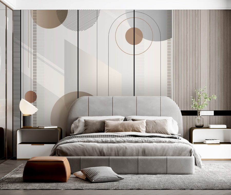 Proměňte svůj prostor pomocí této poutavé nástěnné malby s geometrickými vzory v teplých tónech, které tančí po stěnách. Představte si, že vstoupíte do místnosti, která působí útulně a stylově zároveň, kde křivky a linie vytvářejí rytmus, díky němuž vše působí o něco živěji. Je to jako pozvat si kus moderního umění přímo k sobě domů! Tato nástěnná malba je ideální pro každou stěnu, která se cítí trochu osamělá, a možná vás inspiruje k malé kreativitě nebo dokonce k taneční přestávce. Vneste do svého interiéru pocit tepla a hravosti – vaše stěny vám poděkují!