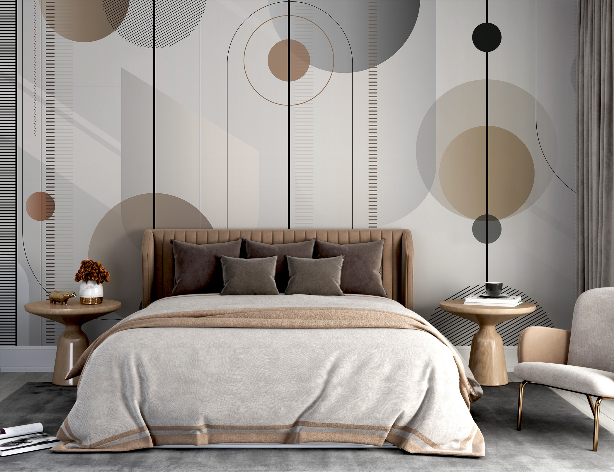 Proměňte svůj prostor pomocí této poutavé nástěnné malby s geometrickými vzory v teplých tónech, které tančí po stěnách. Představte si, že vstoupíte do místnosti, která působí útulně a stylově zároveň, kde křivky a linie vytvářejí rytmus, díky němuž vše působí o něco živěji. Je to jako pozvat si kus moderního umění přímo k sobě domů! Tato nástěnná malba je ideální pro každou stěnu, která se cítí trochu osamělá, a možná vás inspiruje k malé kreativitě nebo dokonce k taneční přestávce. Vneste do svého interiéru pocit tepla a hravosti – vaše stěny vám poděkují!