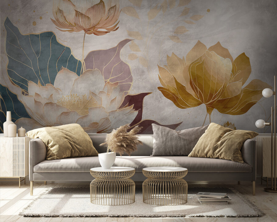 Proměňte svůj prostor díky podmanivému kouzlu této nástěnné malby s elegantními lotosovými květy v jemných odstínech. Představte si, že vstoupíte do místnosti, kde tyto půvabné květy tančí po stěně a přinášejí pocit klidu a pohody. Je to jako mít krásnou zahradu přímo v obývacím pokoji – bez špíny a otravných brouků. Jemné barvy vytvářejí uklidňující kulisu, která je ideální pro posezení s dobrou knihou nebo pro vychutnání klidného šálku čaje. Možná se dokonce přistihnete, že se zasníte, zatímco se budete kochat tou krásou. Tato nástěnná malba není jen dekorací, ale pozvánkou k odpočinku. Ať už se jedná o útulné zákoutí, nebo místo pro živou party, toto umělecké dílo bez námahy pozvedne atmosféru. Tak proč nenechat tyto půvabné květy zaujmout hlavní roli? Vaše stěny si zaslouží trochu lásky, nebo ne?