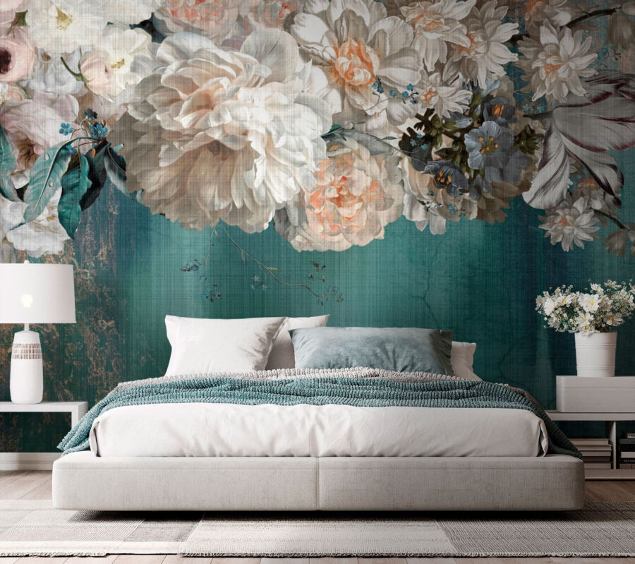 Proměňte svůj prostor v květinovou říši divů s touto nádhernou nástěnnou malbou. Představit si, že se každé ráno probudíte s těmito jemnými květy, je čiré blaho, že? Elegantní květiny hravě tančí na pozadí, které působí živě a zároveň uklidňujícím dojmem. Představte si odpoledne schoulené s dobrou knihou, dovnitř proudí sluneční světlo a nad vámi víří tyto úžasné okvětní lístky – to je atmosféra! Tato nástěnná malba je víc než jen dekorace; je to jako každodenní objetí od přírody. Ideální pro každého, kdo chce dotek elegance bez zbytečného povyku, sladkou připomínku toho, že krása může být bez námahy kolem nás.