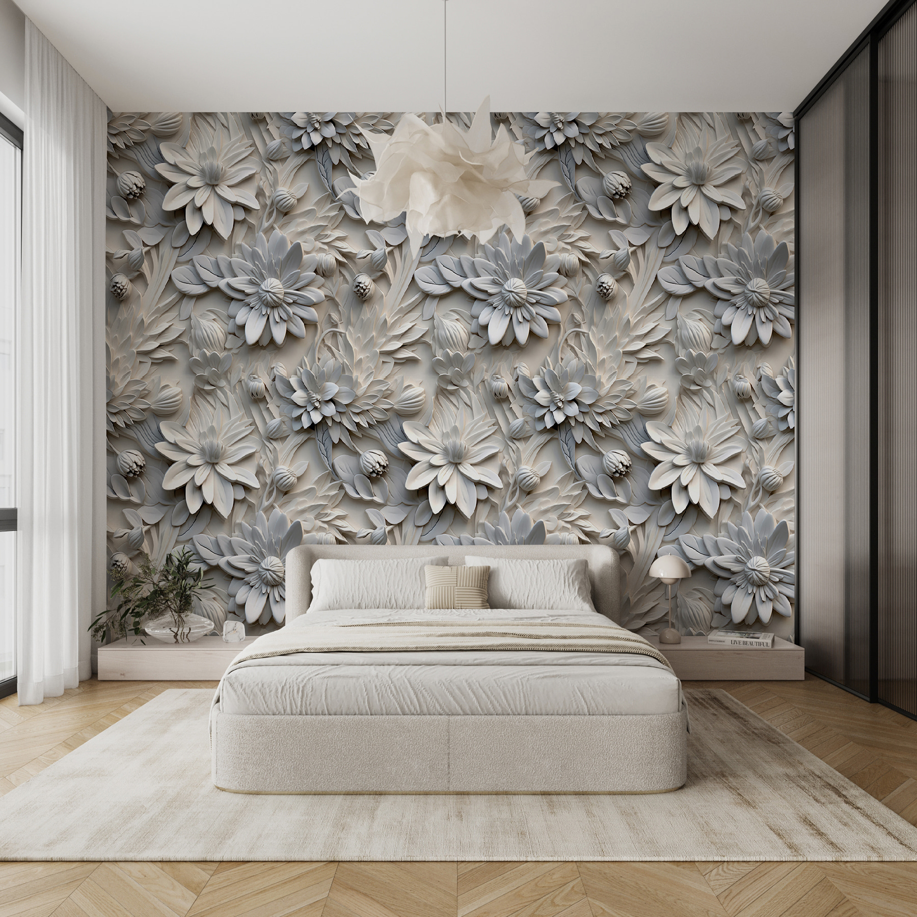 Máte tu vrstvy složitých, téměř 3D květin, které vystupují tak akorát, aby upoutaly váš pohled, ale přitom tak hladce splývají. Je to jako dívat se na mistrovskou sochu, ale na vaší zdi! Představte si, že popíjíte ranní kávu a máte pocit, že si ji vychutnáváte ve své vlastní tajné zahradě. Je svěží, působí živě, a přitom klidně. Troufám si říct, že téměř terapeutické?